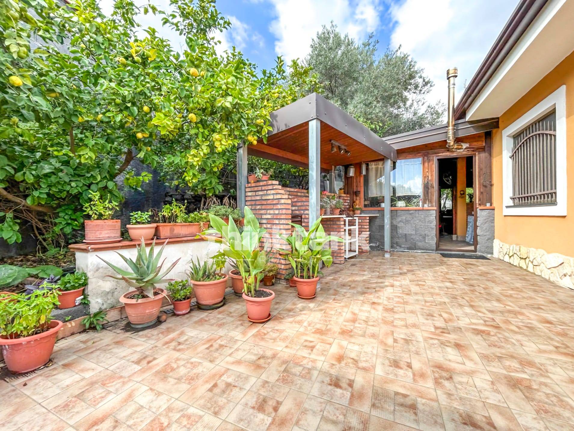 Caratteristiche principali della villa in vendita Aci SantAntonio Superficie interna: 150 mq su unico livello Anno di costruzione: 2012 Classe energetica: A+ Struttura in bioedilizia Ampia zona living con camino ventilato Cucina abitabile con isola e accesso diretto alla veranda coperta di 60 mq con vista piscina Due camere da letto con cabine armadio Camera matrimoniale con bagno privato Secondo bagno e lavanderia/stireria Spazi esterni e comfort La propriet dispone di un terreno di circa 1.100 mq, curato e ben organizzato, con: Piscina privata Area barbecue Posti auto coperti Dependance di 30 mq con angolo cottura e bagno Veranda coperta di 60 mq ideale per pranzi e relax allaperto Dotazioni tecnologiche e impianti Questa villa in vendita Aci SantAntonio offre dotazioni di alto livello: Impianto fotovoltaico da 5,1 kW Sistema di videosorveglianza e allarme antintrusione Infissi a doppio vetro con gas argon Riserva idrica da 8.000 litri Cancello automatico Ottima esposizione solare con vista panoramica sullEtna Perch scegliere questa villa ad Aci SantAntonio Questa propriet rappresenta una soluzione abitativa ideale per chi cerca: Una villa moderna con piscina in Sicilia Comfort energetico e sostenibilit grazie alla bioedilizia e al fotovoltaico Privacy, spazi esterni curati e una splendida vista sullEtna Una villa in vendita Aci SantAntonio di rara qualit, perfetta per chi desidera vivere in un contesto tranquillo, moderno e panoramico, a pochi minuti da Catania e dalle principali localit della Riviera dei Limoni. Contatta l'inserzionista