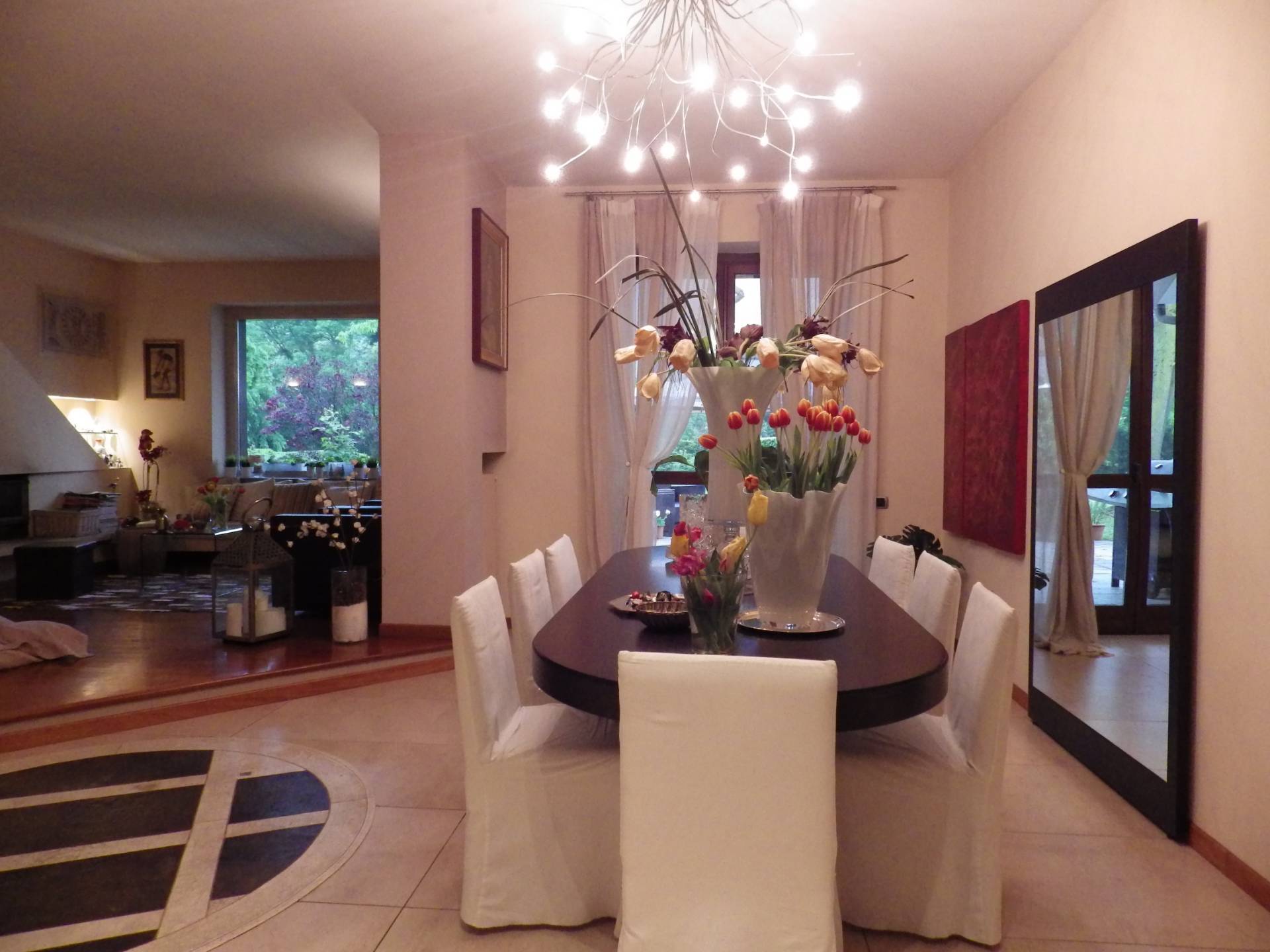 Piano terra: ingresso su ampio salone doppio con vetrate e camino, zona pranzo e cucina abitabile, 2 camere, stanza armadi e doppi servizi di cui uno interno alla camera padronale.