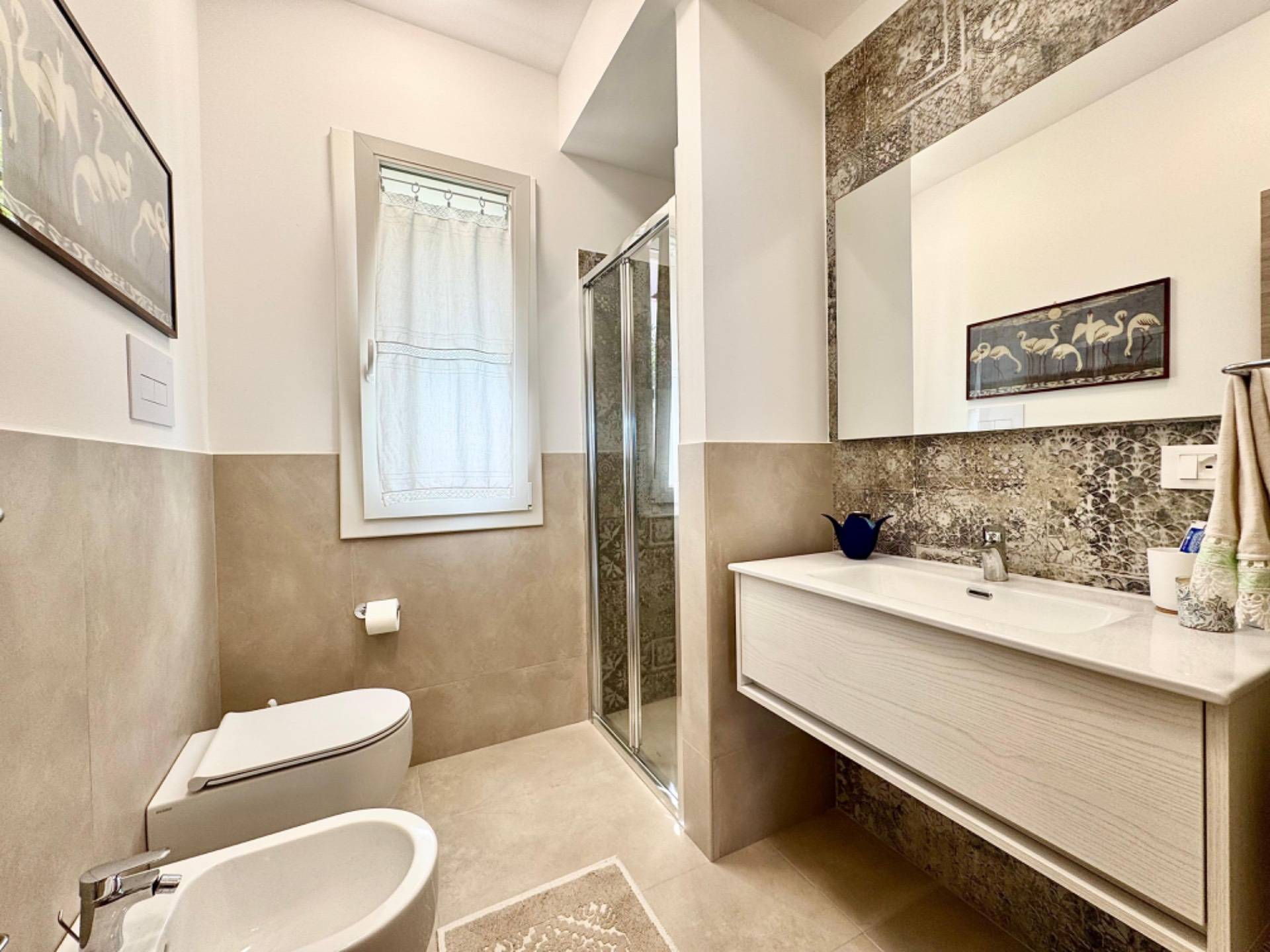 Sono presenti due bagni finemente ristrutturati, entrambi con finestre e docce, che offrono funzionalit e comfort per gli occupanti.