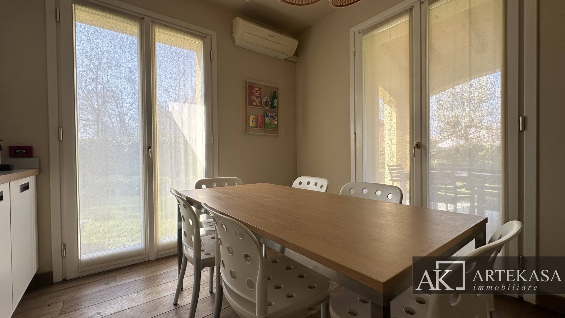 La villa, caratterizzata da ambienti luminosi, distribuita su due livelli: al piano terra ampio soggiorno, cucina abitabile che si affaccia sul porticato, camera (comoda anche come ufficio o saletta studio) e bagno giorno.