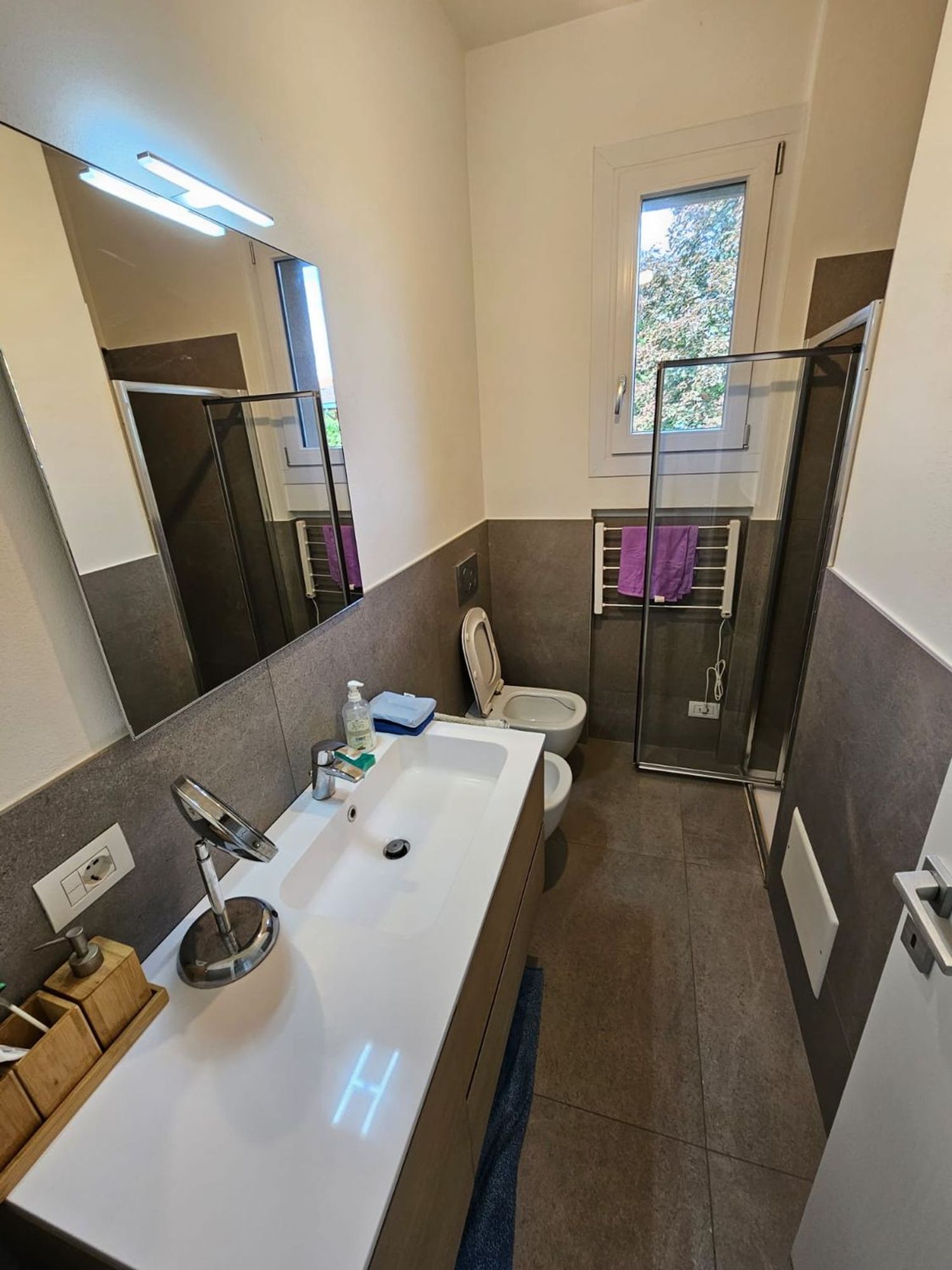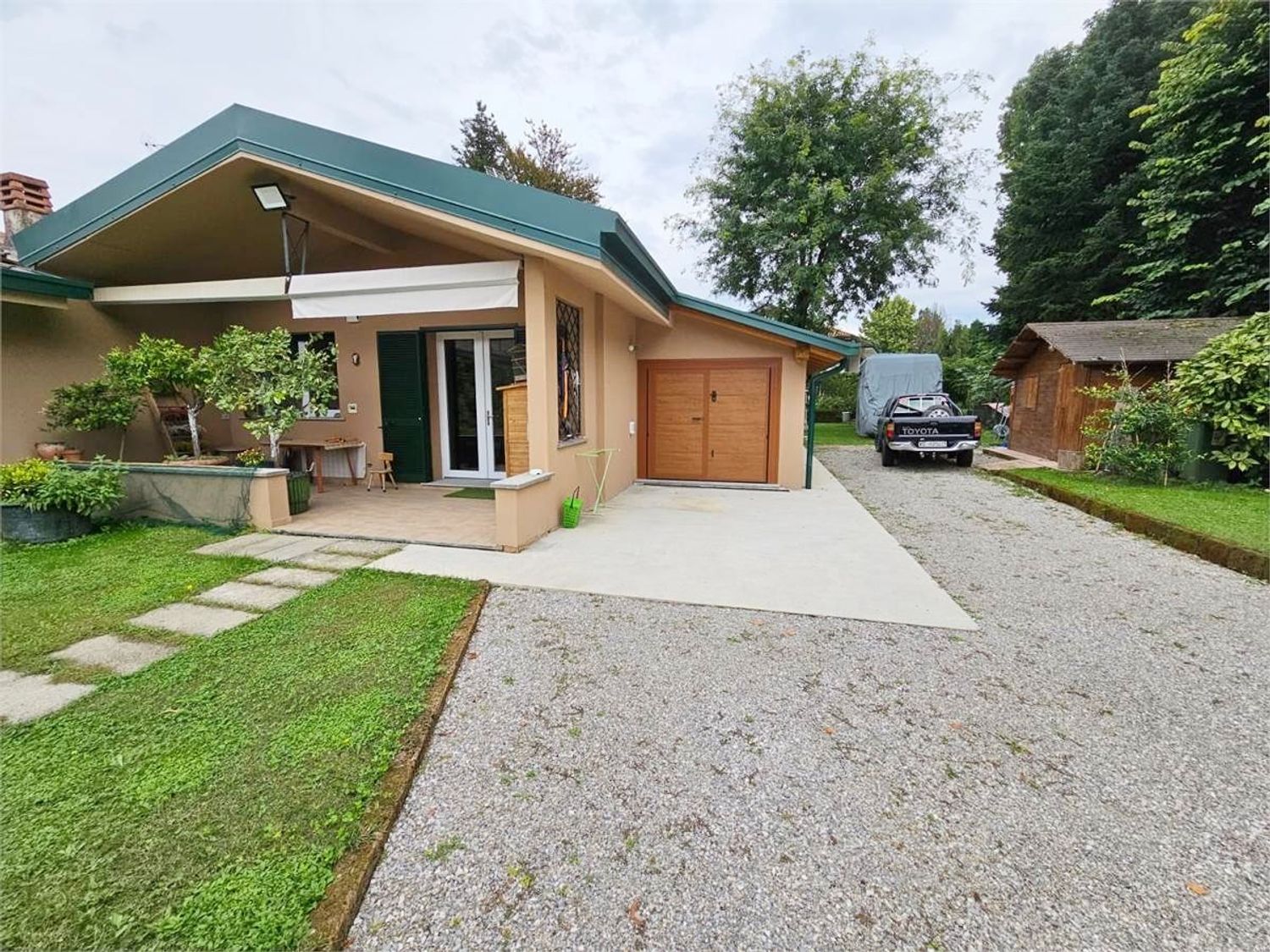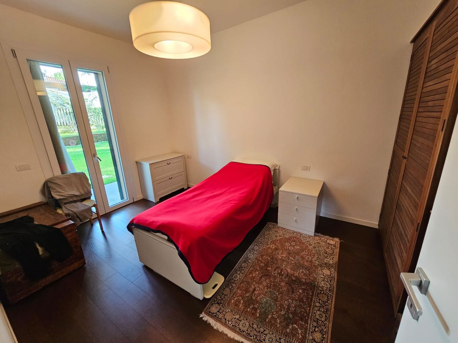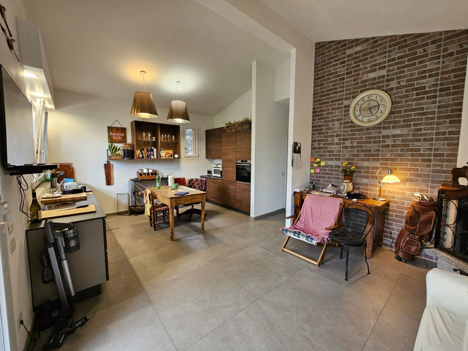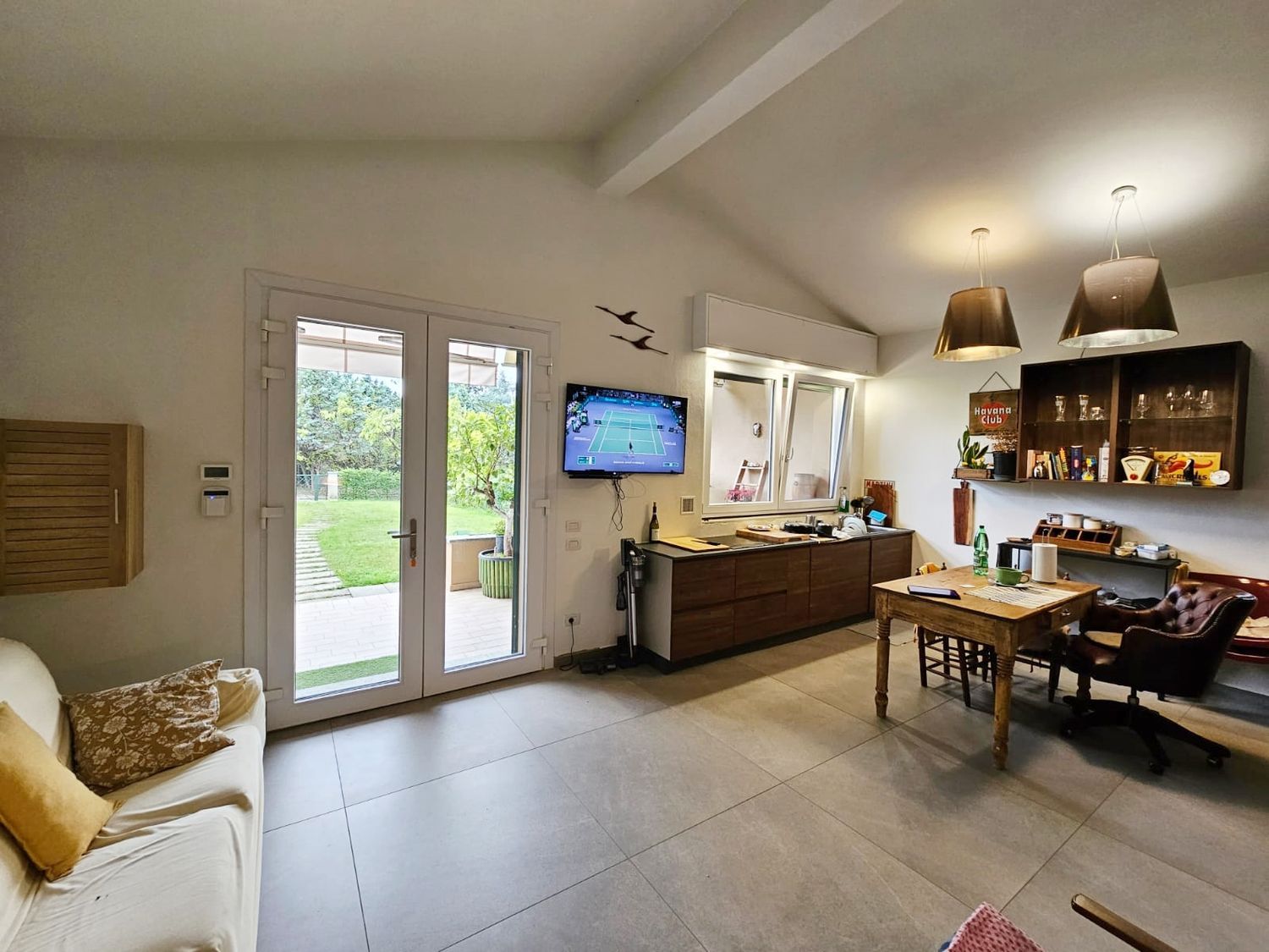 Il box, che pu essere trasfdormato in ulteriore camera o bagno, anch'esso, come l'abitazione, provvisto di riscaldamento a pavimento oltre ad avere ricarica WALBOX per carica auto. Immenso giardino di circa 900 mq. e bellissimo portico.