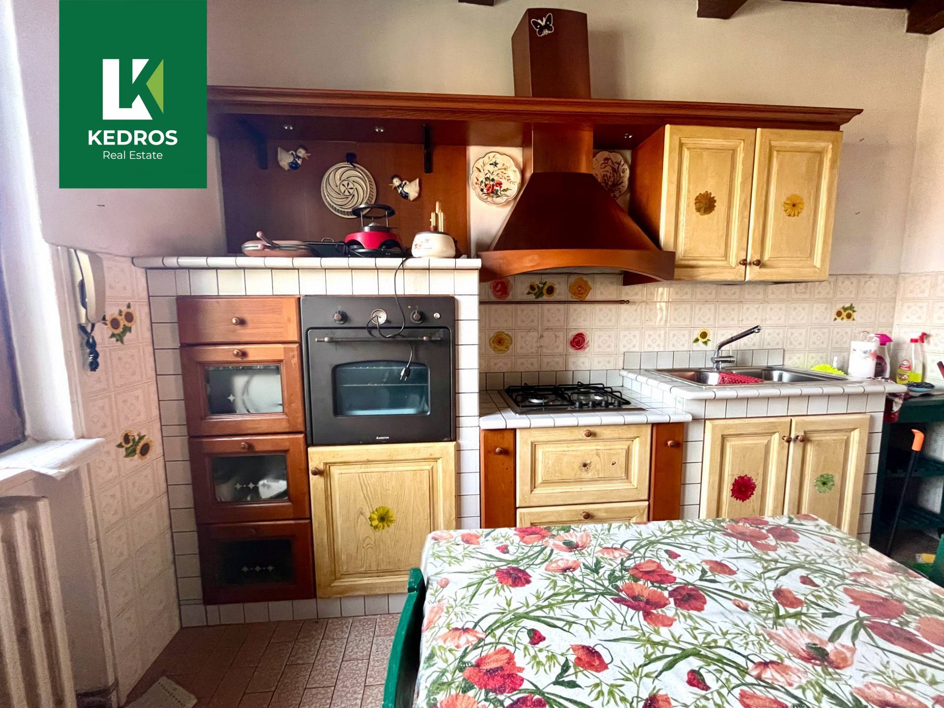 Al piano terra abbiamo un ingresso, una cucina abitabile, un ampio soggiorno con camino ed un terrazzo coperto oltre ad un bagno e una camera matrimoniale, anch'essa con camino.