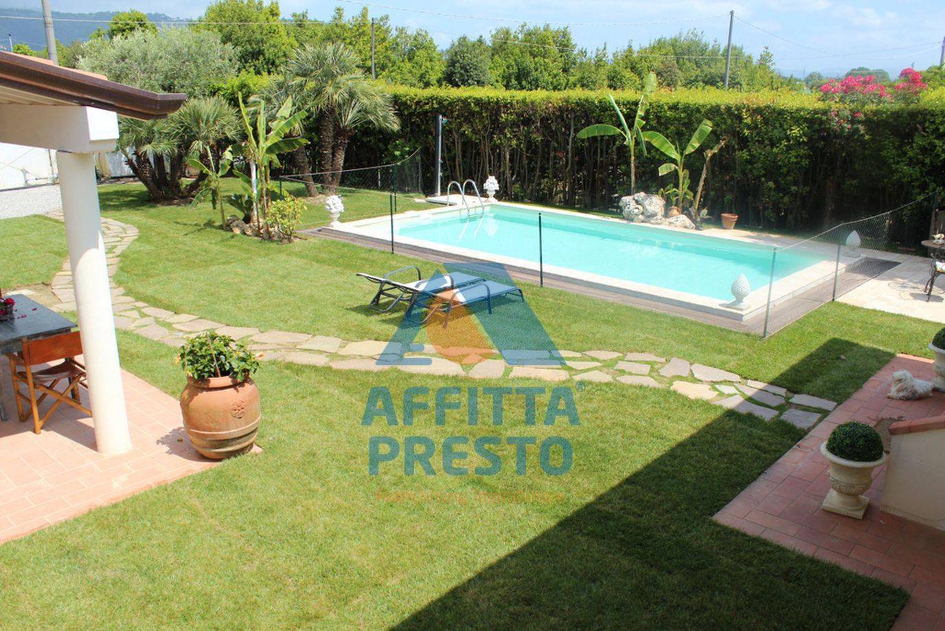 rif. AV5001 - Comune di Camaiore (LU) VILLA SINGOLA, a dieci minuti dal mare nella prima campagna, vendesi splendida villa su di un unico livello con taverna, e dependance, immersa in un giardino esclusivo di circa 1.000,00 mq. con piscina, Il corpo principale di circa 190 mq. ed composto da un ampio porticato vivibile, ingresso, ampio soggiorno con grandi vetrate, cucina abitabile, disimpegno da cui si accede ad una camera matrimoniale con bagno privato, una seconda camera matrimoniale ed una camera singola, bagno principale con doppio lavabo, vasca e doccia.