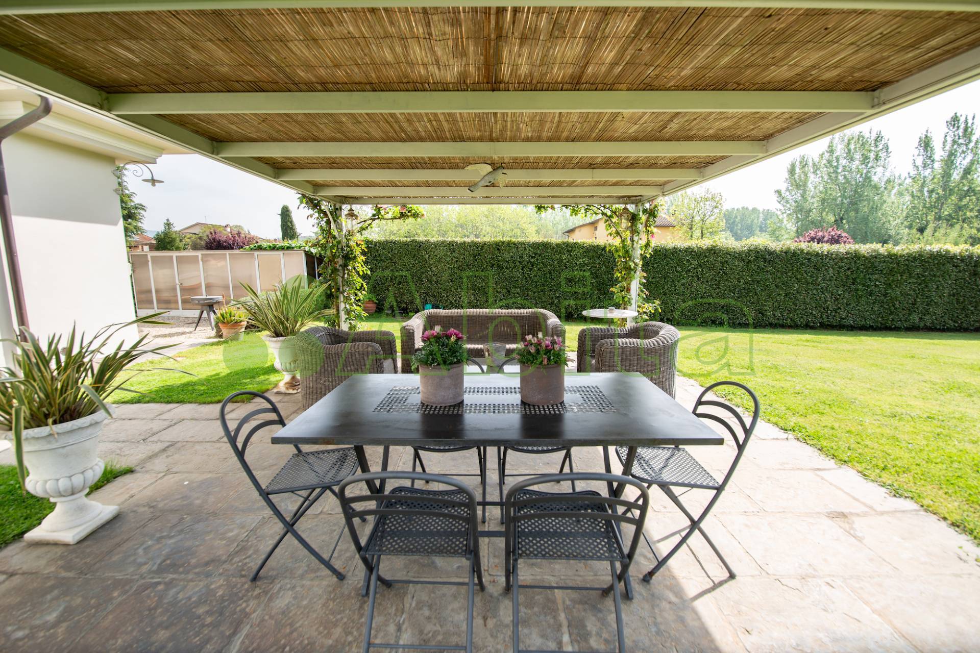 Completano la propriet un grande giardino recintato con doppio accesso carrabile e posti auto coperti.