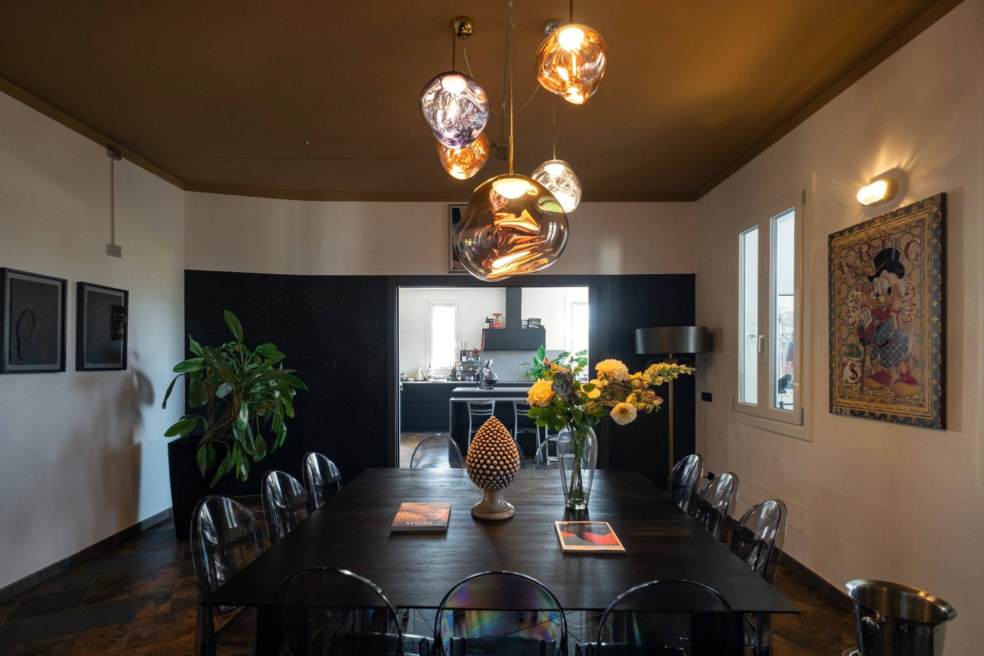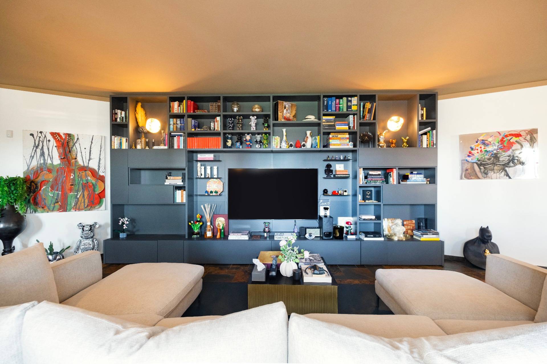 Il living triplo, ampio e luminoso, costituisce il fulcro della propriet: uno spazio di rappresentanza caratterizzato da volumi generosi, fluidit visiva verso lesterno e materiali di design accuratamente selezionati.