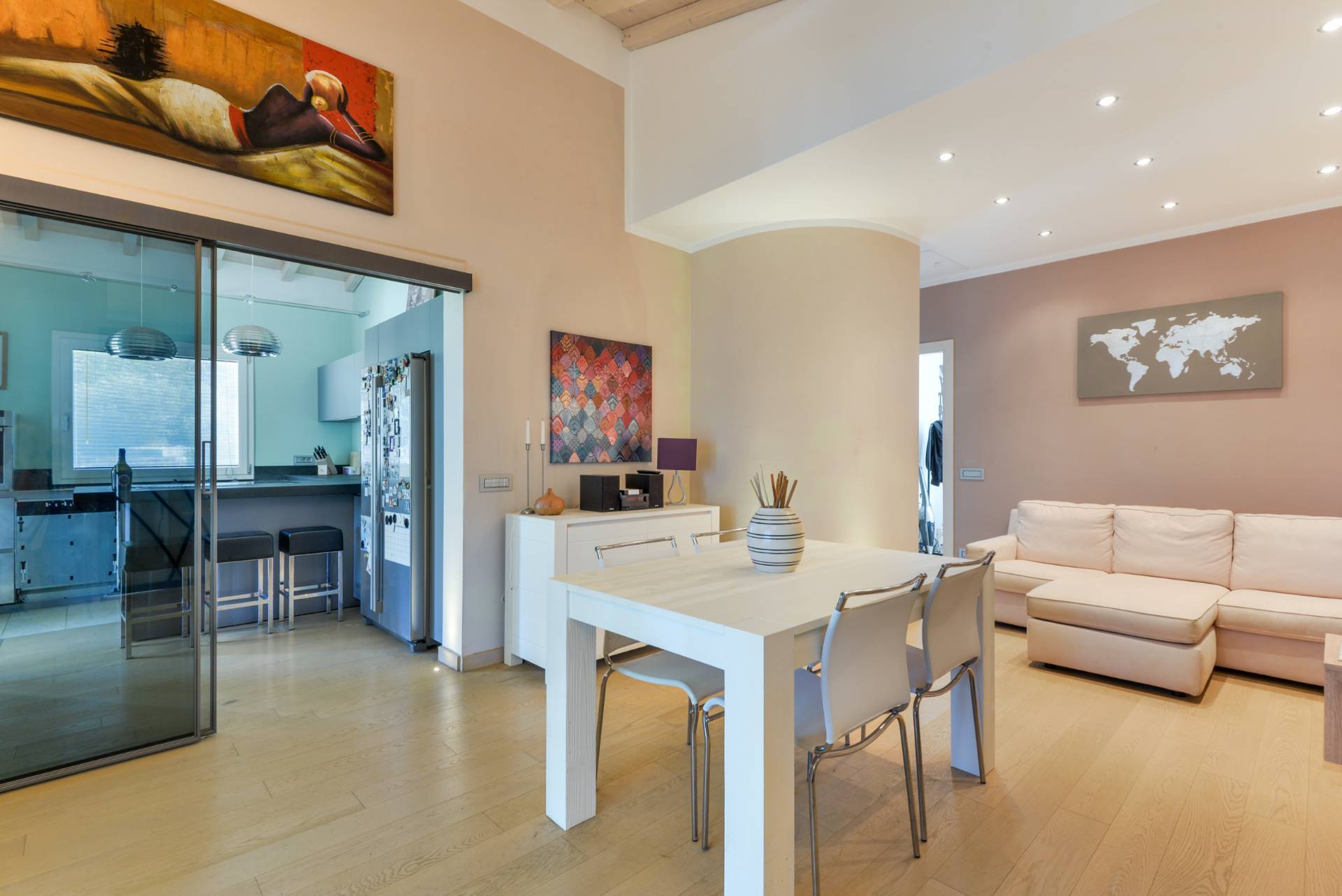 La propriet si sviluppa interamente su un unico piano rialzato, accogliendo con una luminosa zona giorno dagli spazi armoniosi e ben distribuiti.