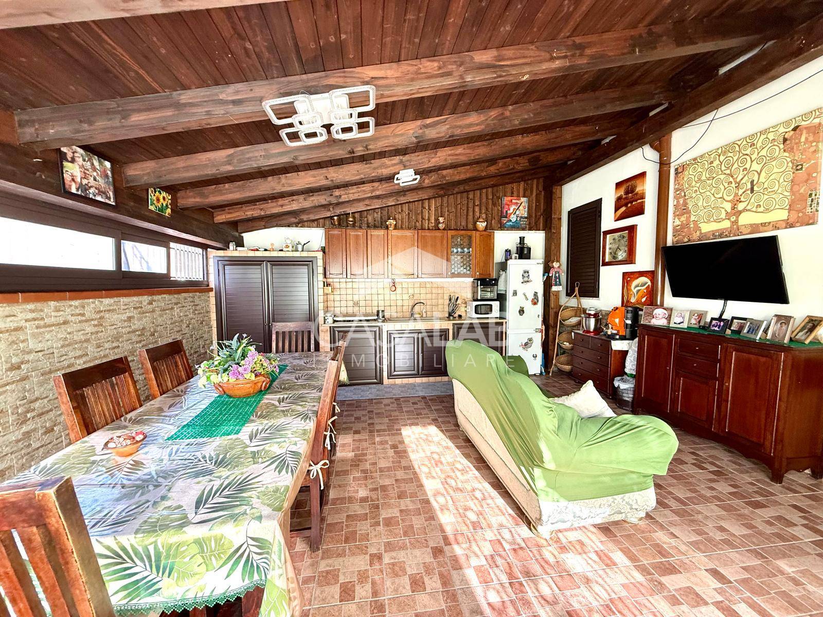 CARATTERISTICHE INTERNE: Al piano terra troviamo una spaziosa zona giorno verandata, salone, cucina abitabile e bagno di servizio con doccia.