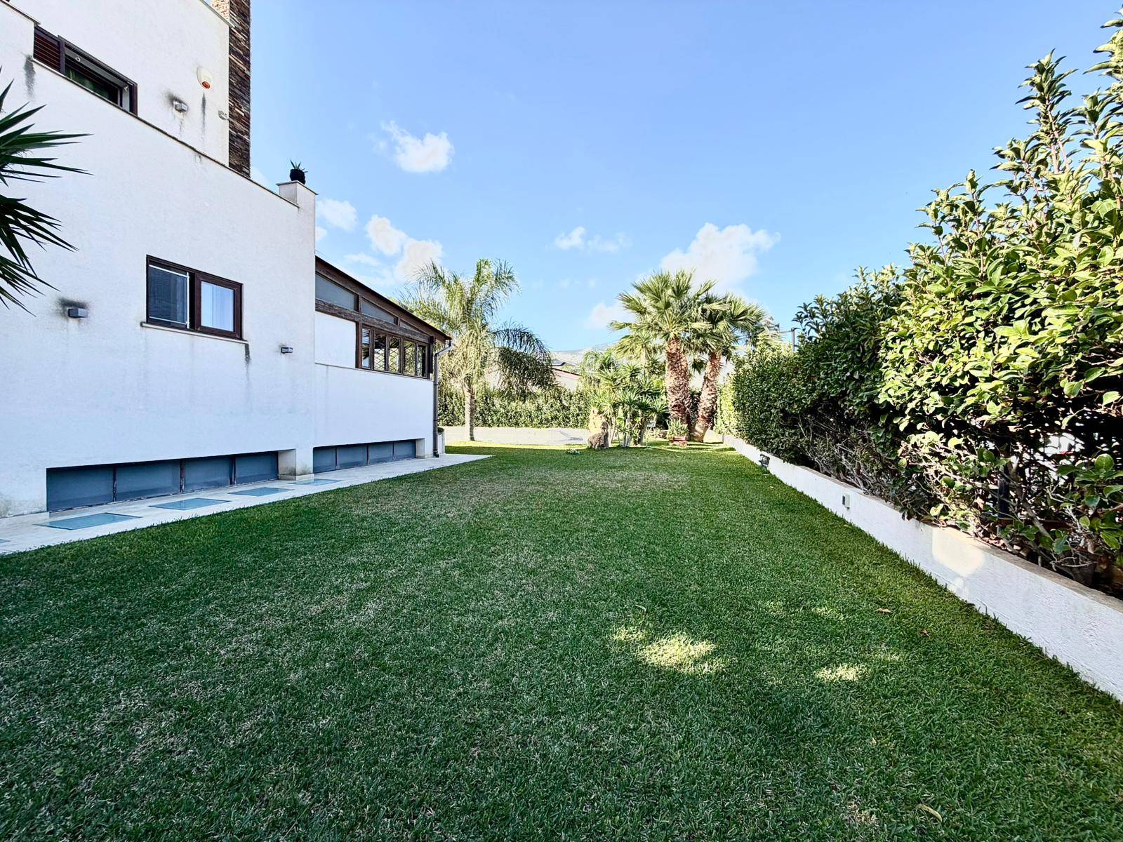 La villa si estende su unampia superficie di 320 metri quadrati, distribuiti su 3 livelli, circondata da un curatissimo prato allinglese.