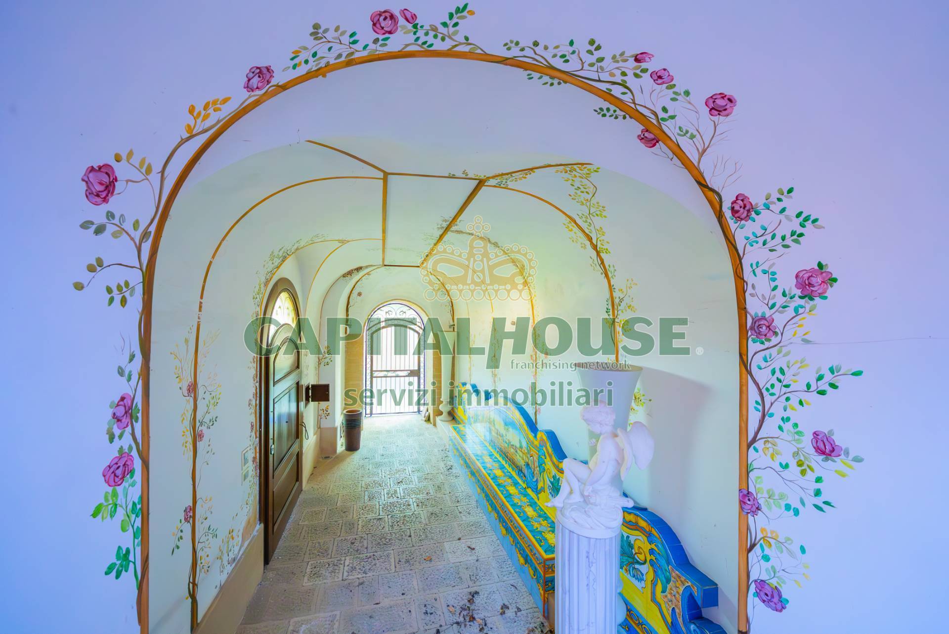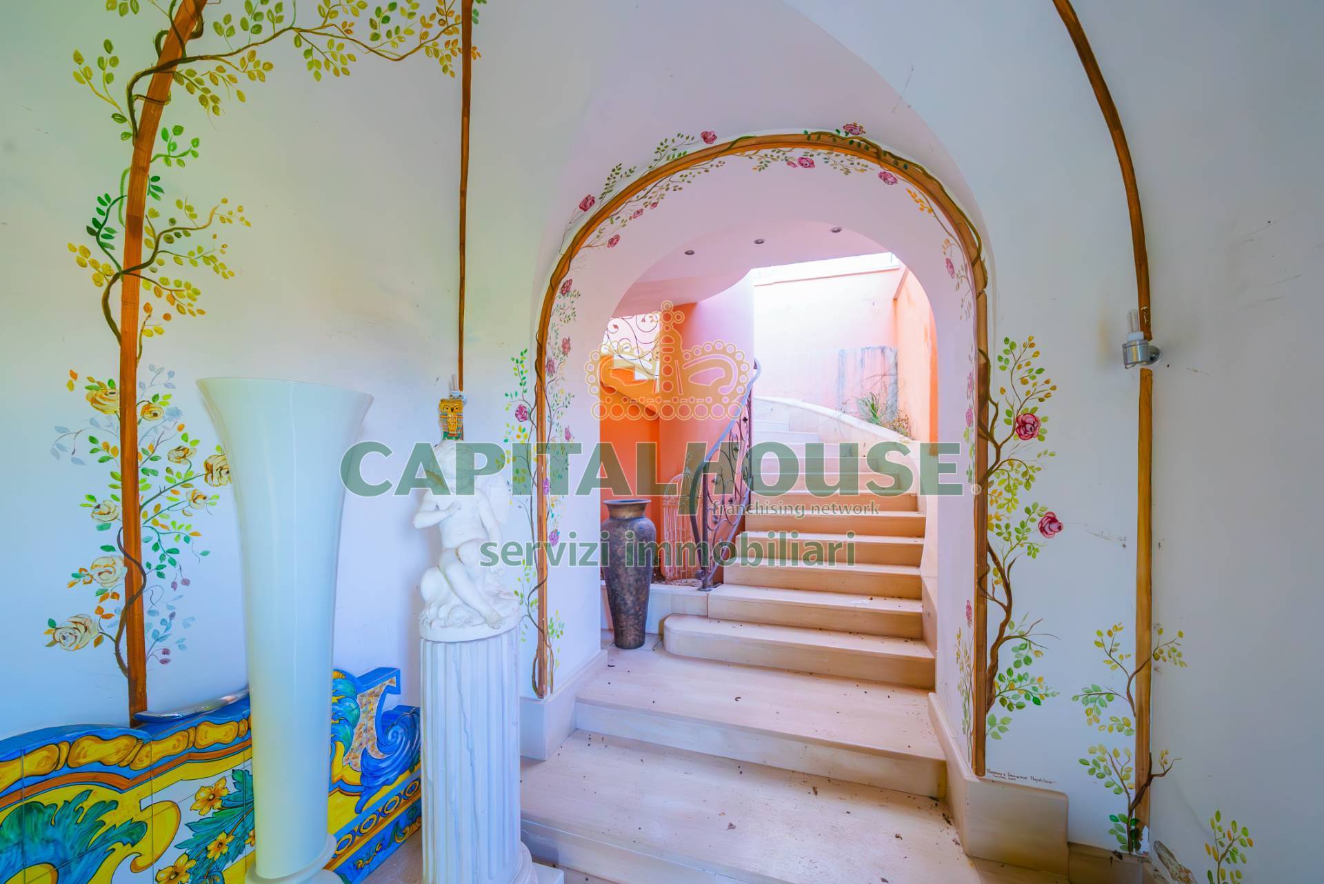 E' composta da 9 vani di cui 6 luminose camere da letto, un ampio salone con camino, una comoda cabina armadio, una zona adibita a palestra, una bellissima dpendance con camino e forno a legna con accesso diretto al giardino dove passare momenti piacevoli in famiglia o di relax puro, 2 cucine, 5 WC ognuno con delle caratteristiche diverse e una bellissima libreria.