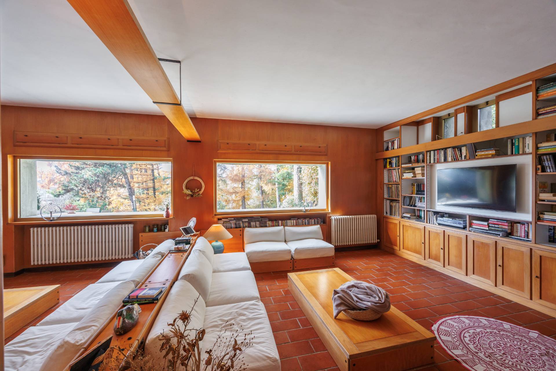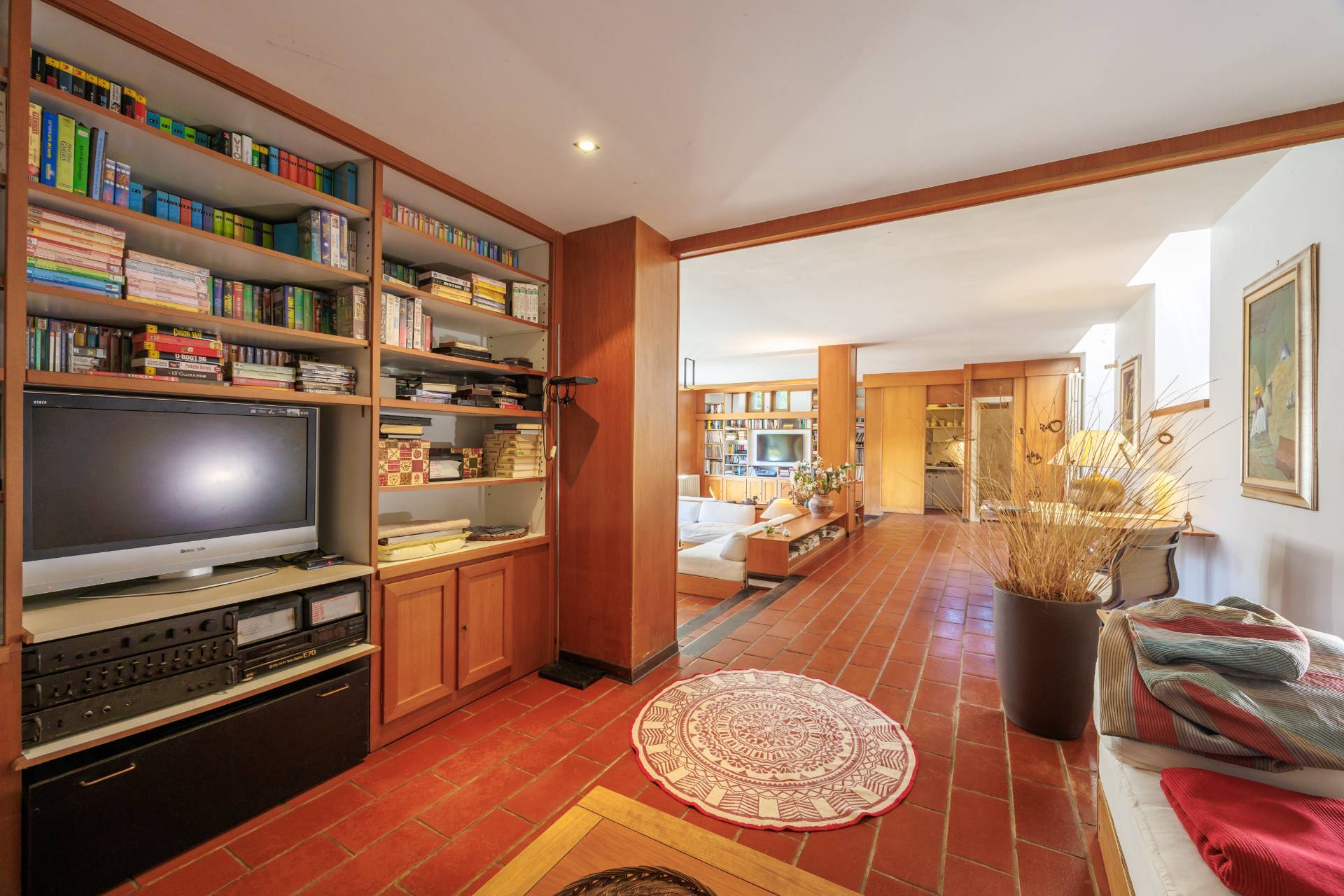 Al primo livello lingresso conduce a un doppio salone caratterizzato da grandi vetrate che donano luce naturale e continuit con il giardino.