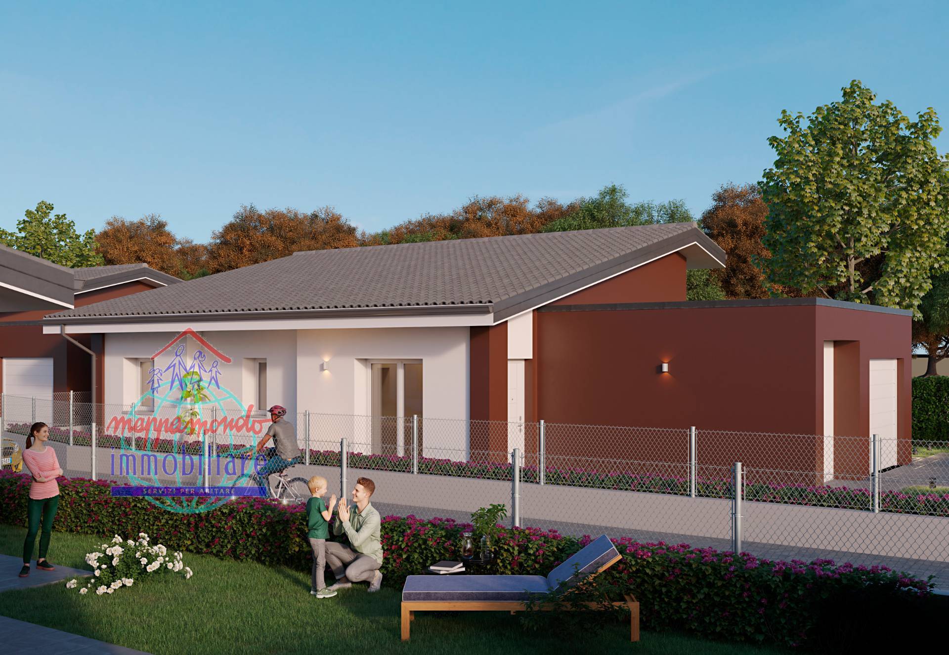 NUOVO INTERVENTO " LE VILLE NEL PARCO" LE VILLE VENGONO PROPOSTE AL GREZZO AD ? 280.000,00. In collaborazione con ***.*******.** Immobiliare proponiamo in vendita Ville Monofamiliari disposte interamente al piano terra con ampi giardini di propriet COMPOSIZIONE INTERNA ED ESTERNA: Ingresso su ampio soggiorno con cucina a vista 2 bagni 3 camere da letto Garage Possibilit di creare una zona soppalcata in soggiorno Giardino esclusivo Posto auto CONDIZIONI DELLO STATO GREZZO: Copertura finita e coibentata compresa dei camini di sfiato, linea vita, tegole in cemento e predisposizione per 9kw di fotovoltaico Controtelai delle finestre dotati di tapparelle e motorizzazione Bancali Intonaci esterni Tinteggiatura esterna Lattonerie di copertura, pluviali e discendenti fino a terra Portoncino blindato di ingresso e portone sezionale autorimessa Pozzetti di allaccio interni al lotto per le utenze acqua, Enel e Telecom Recinzione perimetrale completa Cancello carraio CHIAMA PER FISSARE UN APPUNTAMENTO E VISIONARE NEL DETTAGLIO IL PROGETTO.