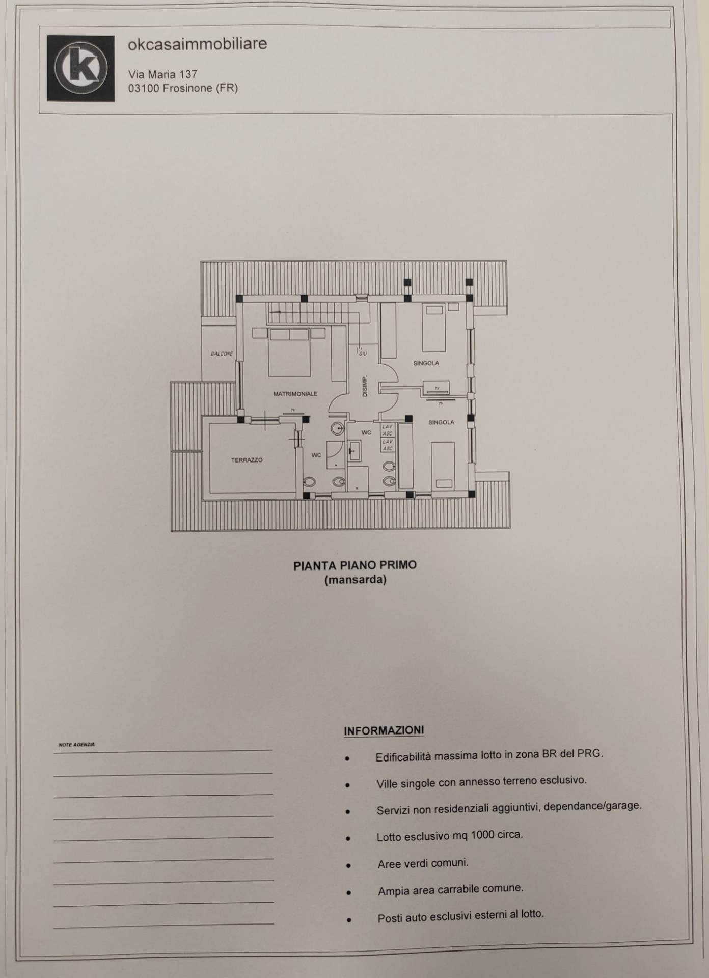 La nostra agenzia, okcasaimmobiliare Frosinone, a disposizione per fornire ulteriori informazioni e per organizzare un sopralluogo. Contatta l'inserzionista