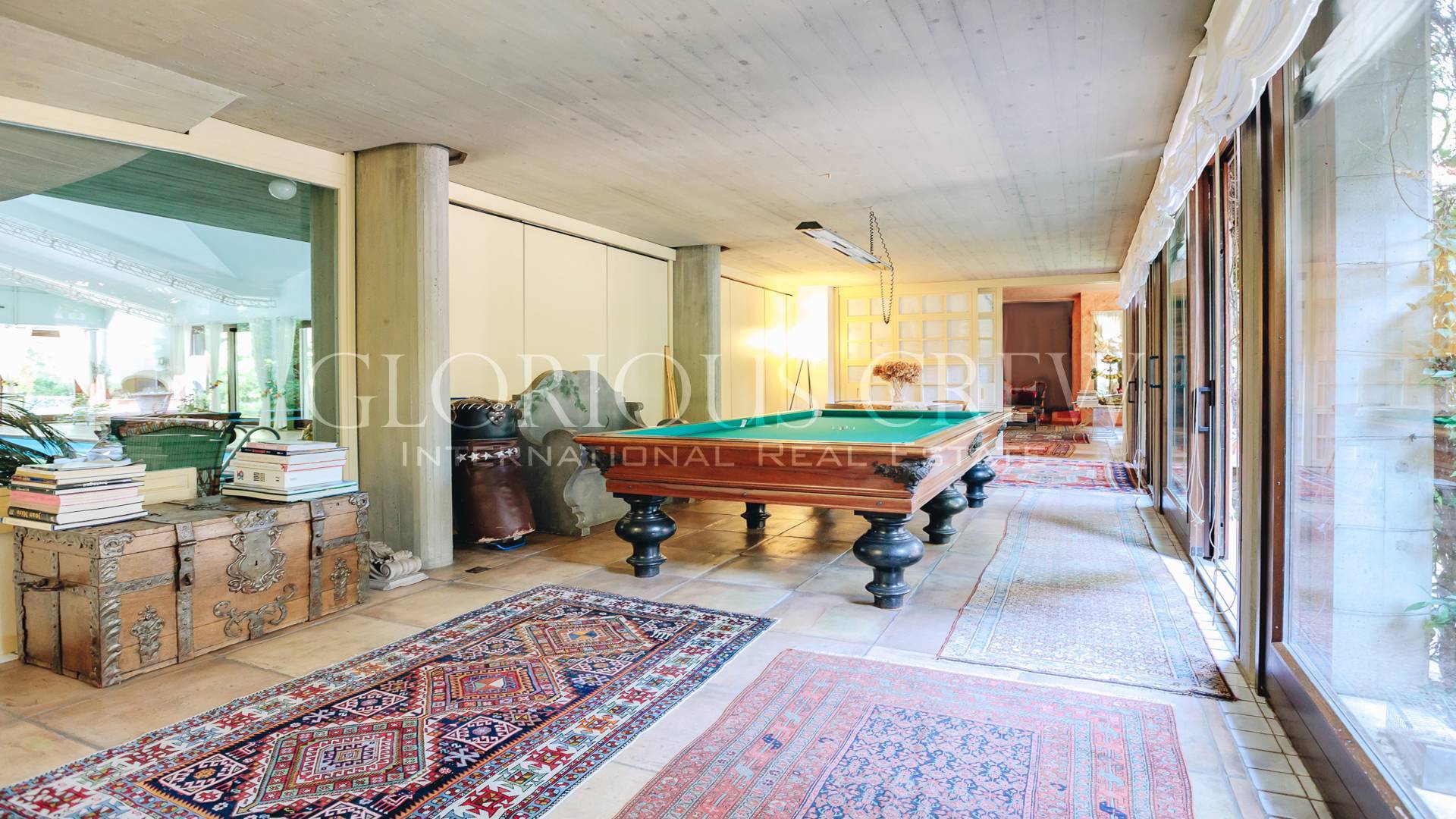 Comunicante con il parco la lussuosa piscina interna dotata di spogliatoi, servizi, guardaroba e di portefinestre scorrevoli che affacciano sul portico esterno.