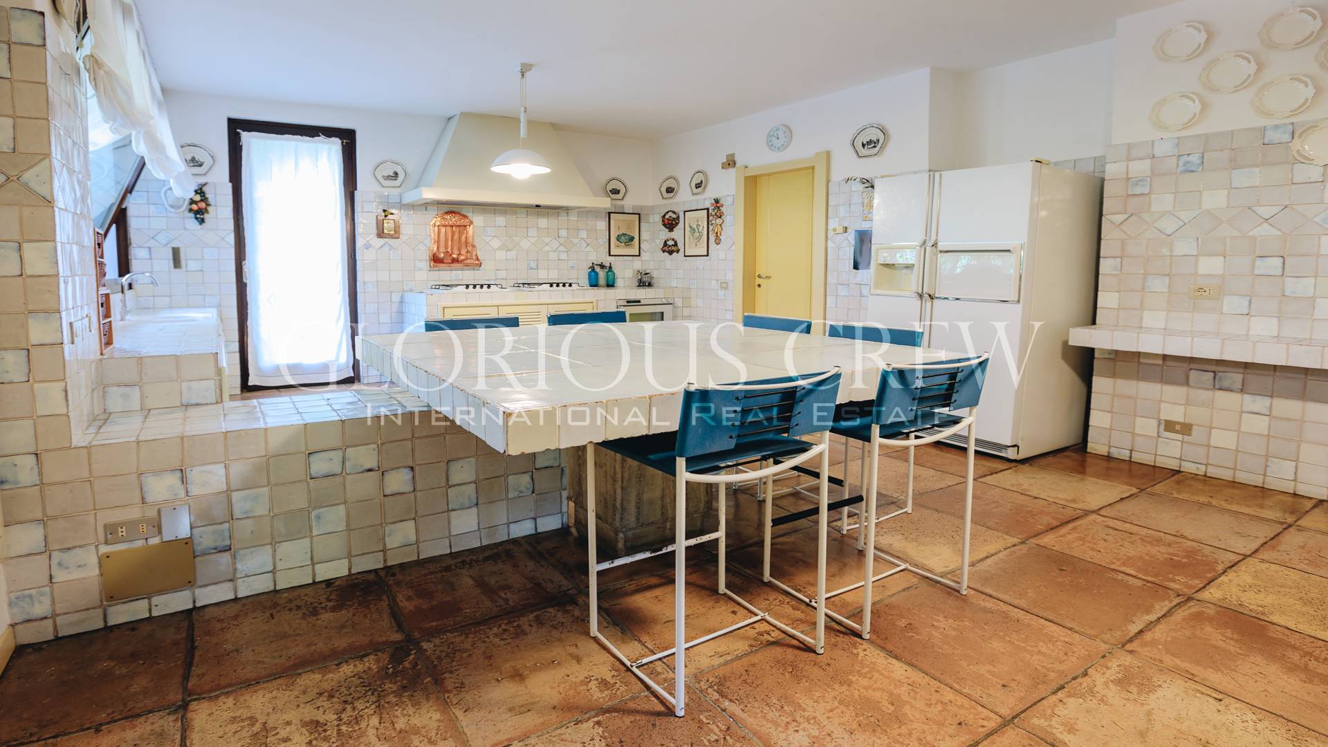 Al piano terra troviamo il salone di rappresentanza con grandi vetrate scorrevoli, la sala da pranzo, la comoda cucina abitabile dotata di office adiacente, la zona studio relax, la sala biliardo, due bagni e la zona riservata a lavanderia; inoltre presente una pratica dispensa utile per conservare vino e altri beni di valore.
