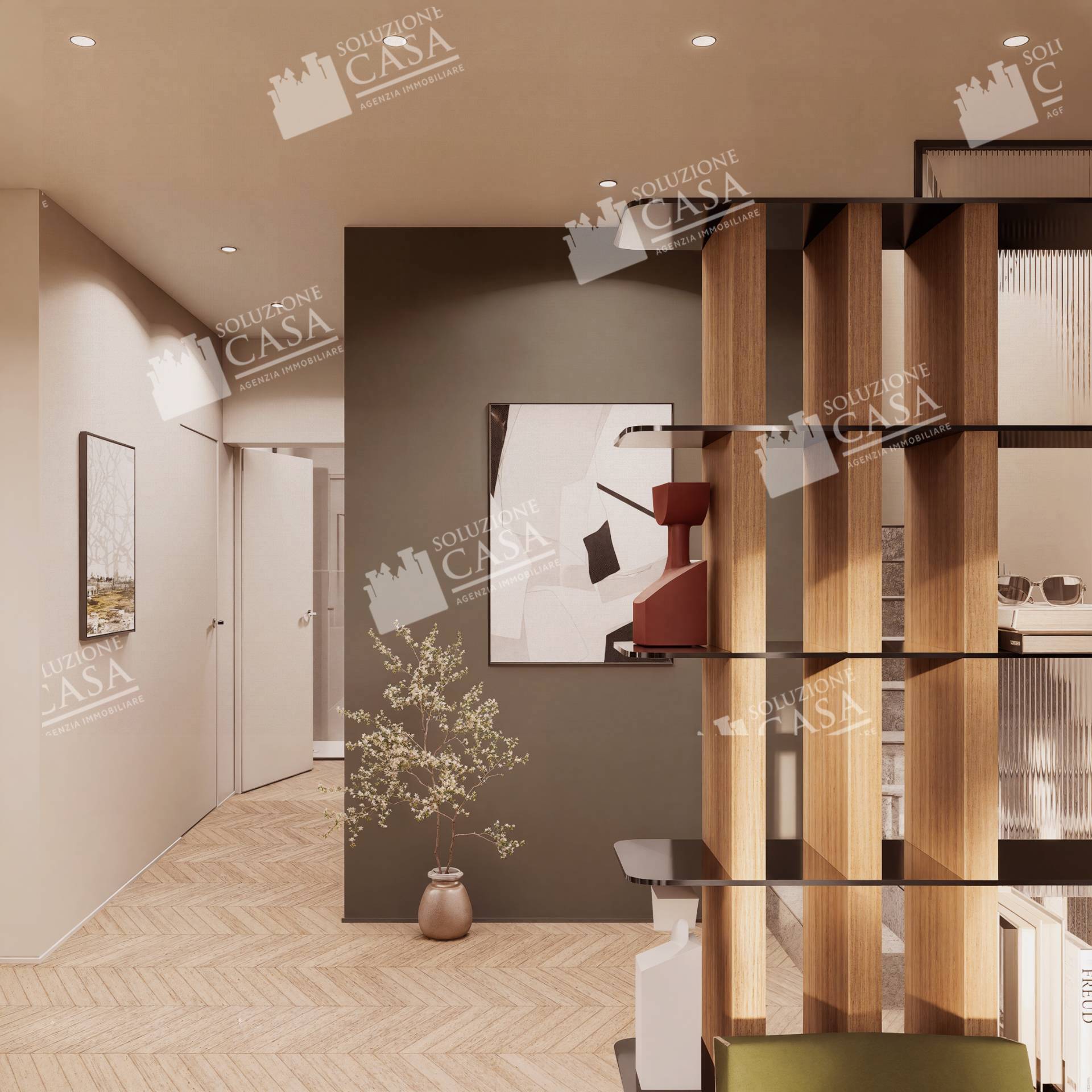 Interni da vivere:Lingresso si apre su un ampio soggiorno con cucina a vista, concepito per esaltare luminosit e convivialit.