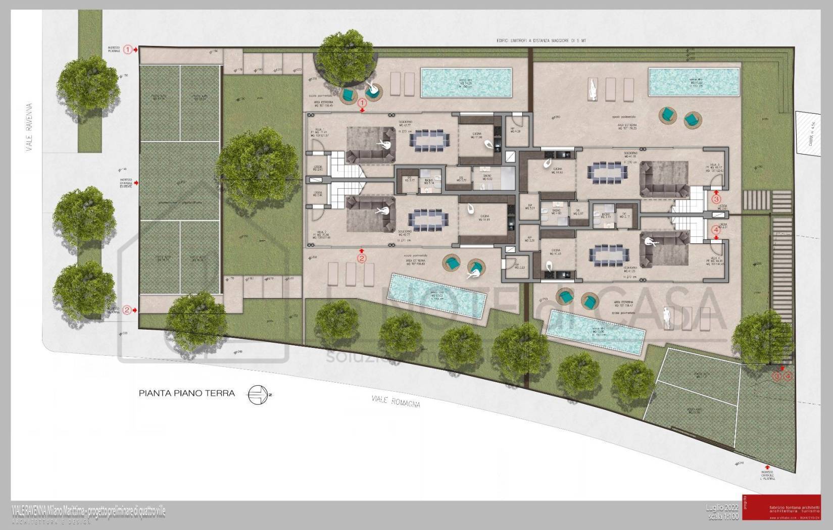 Prestigiosa Villa con piscina posta in un complesso immobiliare unico per posizione, tipologie e finiture, sito in Milano Marittima a 50 metri dal centro ed a soli 150 metri dal mare, con ingresso e giardino indipendente.