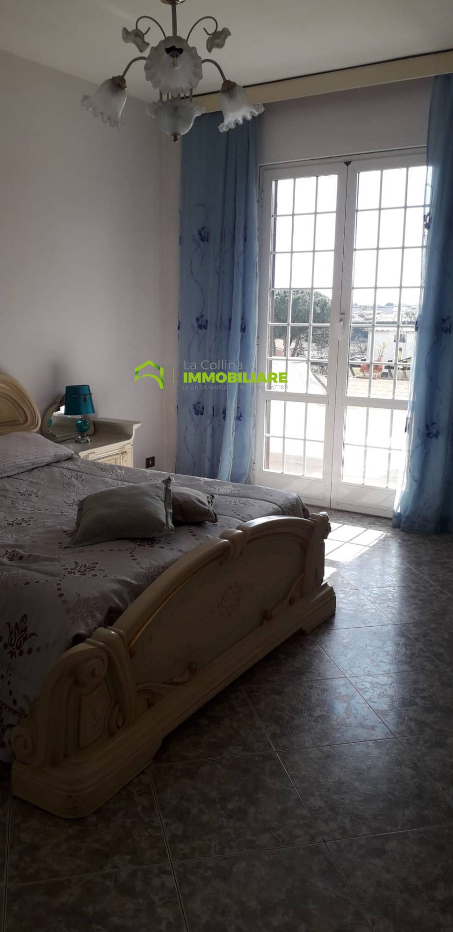 Il piano primo, di mq 130 circa, si compone di ingresso, salone, cucina, bagno, due camere da letto, balcone su due lati, accessibile tramite scala esterna.