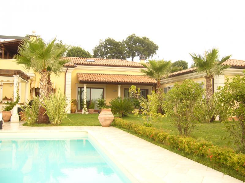 L'immobile in vendita ha l'uso in comune con l'altra unit abitativa della piscina rettangolare della dimensione di mt. 18x8. La villa ha il riscaldamento a pavimento alimentato a gas gpl e i pannelli solari posti sul tetto per la produzione di acqua calda.