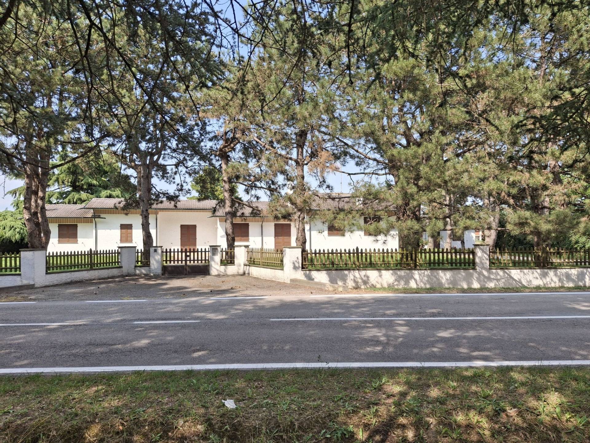 AC327 - COPPARO (***.*******.**), disponibile interessante complesso immobiliare di assoluto pregio, immerso in parco di 3.300 mq. piantumato con alberi di alto fusto, costituito da: "A" (mq.230) - Splendida villa padronale disposta tutta su piano terra (no barriere architettoniche) e suddivisa in: ingresso, ampio salone con camino, grande cucina abitabile, 4 camere da letto matrimoniali, 2 bagni, ripostiglio, ampio patio; l'immobile dotato di rifiniture in buono stato di manutenzione in stile retr, che donano all'immobile un particolare fascino; "B" (mq.94) - Casa indipendente (dependance), tutta su piano terra (no barriere architettoniche) e suddivisa in: ingresso, ampio soggiorno con cucina abitabile a vista, 2 camere da letto matrimoniali, bagno, ripostiglio; Completa la propriet un grande garage di 40 mq. ed una funzionale cantina.