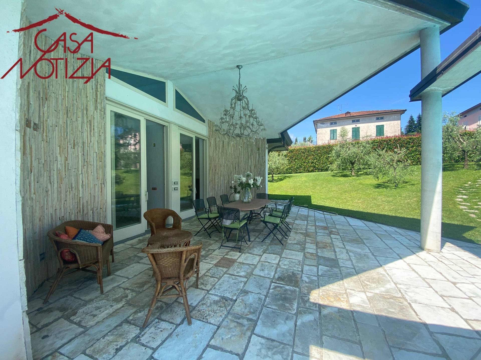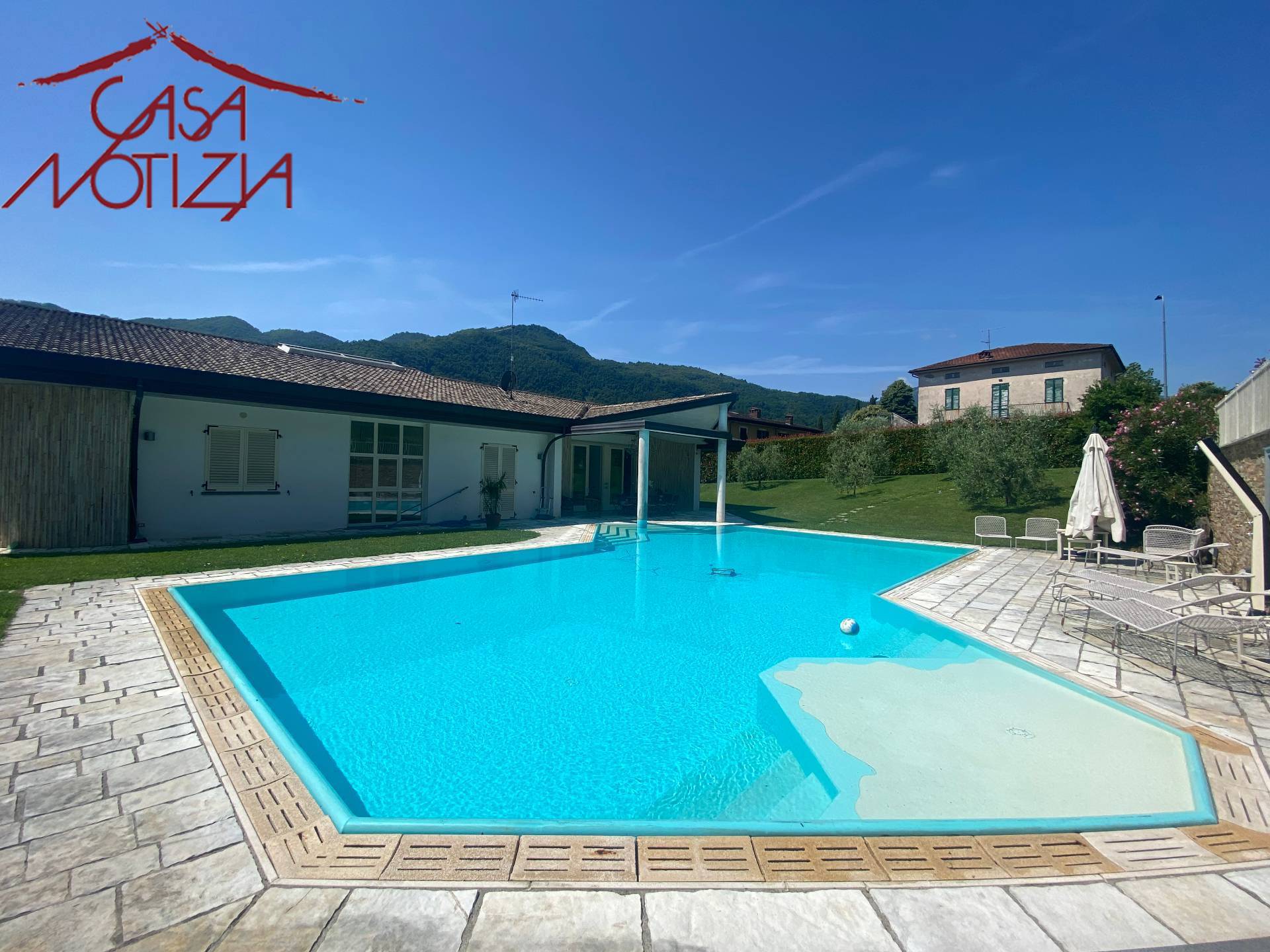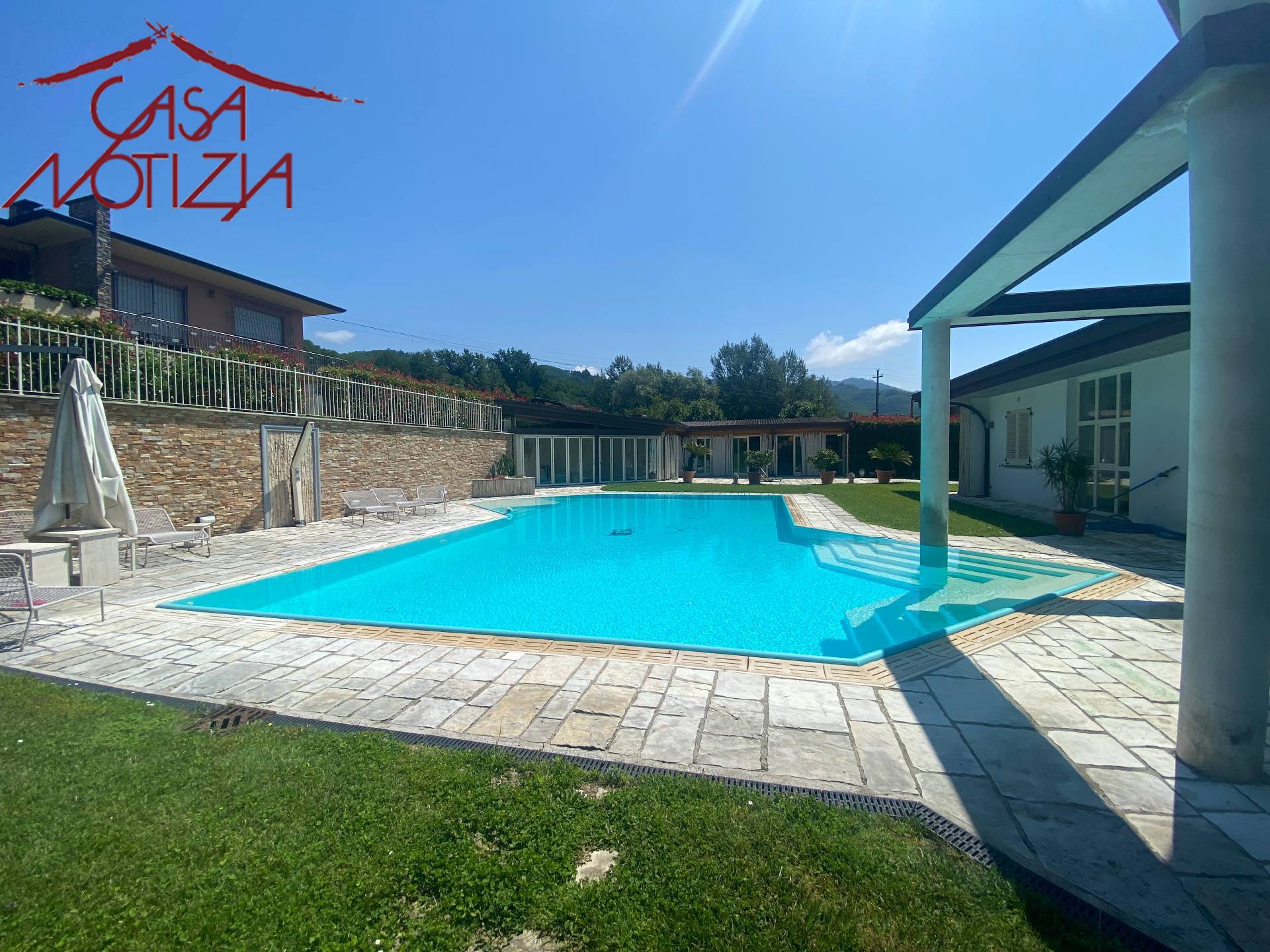 In zona residenziale a pochi km da Lucca e precisamente in una frazione del Comune di Coreglia Antelminelli, l'agenzia immobiliare Casanotizia lieta di presentare elegante e moderna Villa di nuova costruzione, sviluppata tutta su un piano, di circa 200 mq, corredata da giardino sui quattro lati con splendida piscina interrata a sfioro di mq 14x6 oltre ad ampia dependance di circa 110 mq dove internamente troviamo una bella cucina con isola, un'ampia zona pranzo con soggiorno e bagno.