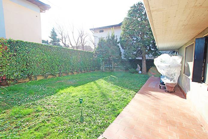 L'appartamento al piano primo si trova in buone condizioni ma necessita di interventi di ristrutturazione e personalizzazione in base ai gusti ed alle esigenze dell'acquirente, dotato di riscaldamento autonomo e di una disposizione interna molto razionale, pavimentazioni in ceramica, ampie e luminose finestre e porte finestre in tutti gli ambienti, terrazze rifinite in cotto con bella vista sul verde.