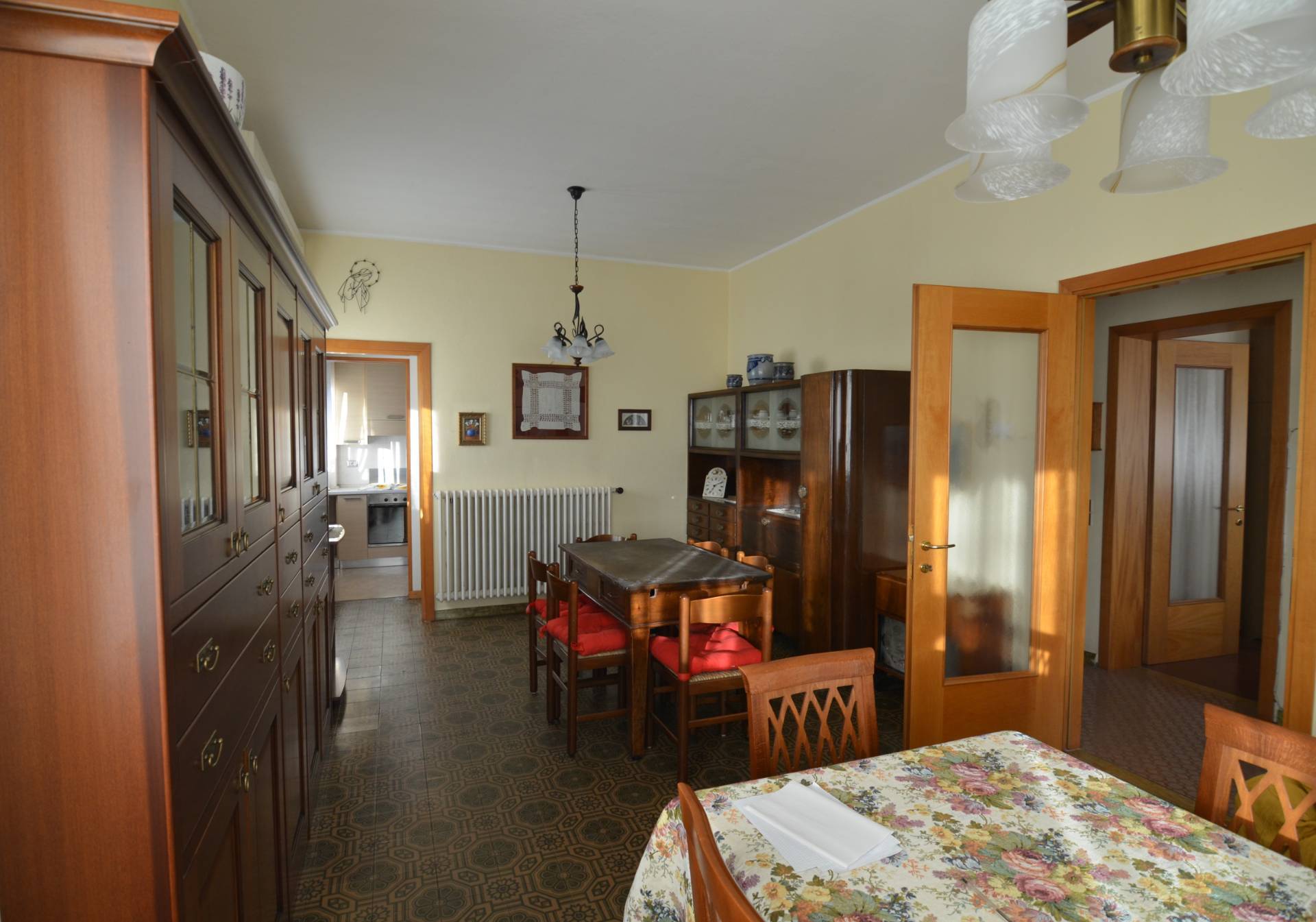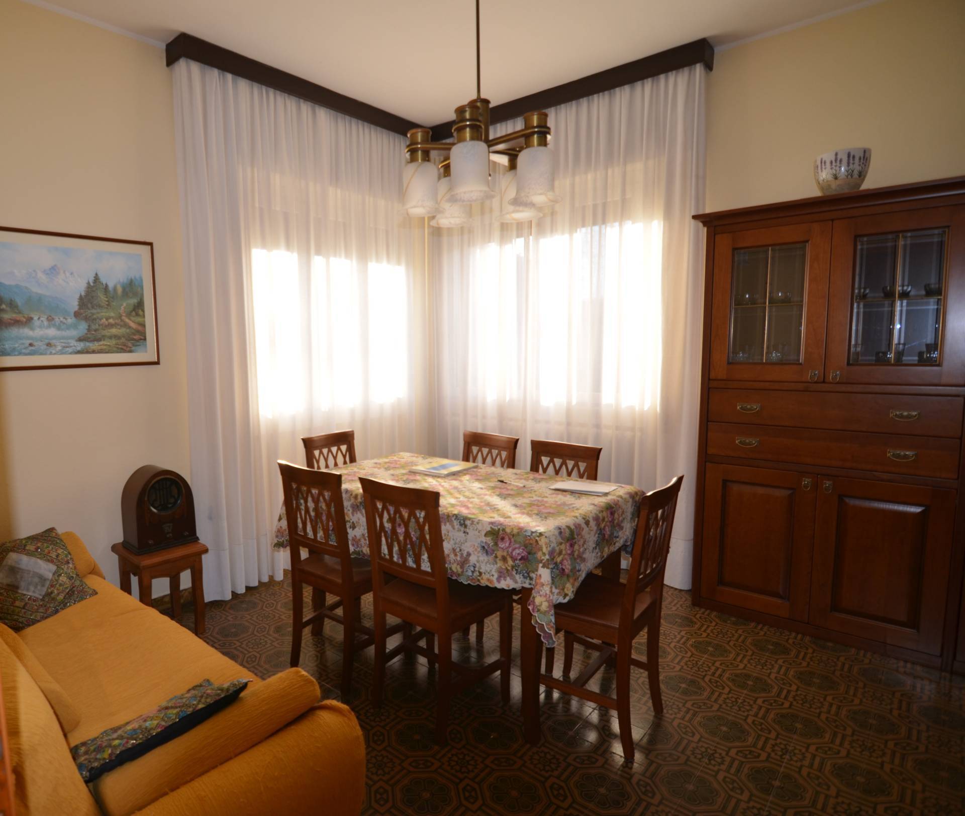 L'immobile composto al piano terra, ingresso, disimpegno, ampio soggiorno con cucinino, un ripostiglio, tre camere da letto, un bagno, al piano primo seminterrato, quattro vani pluriuso di cui uno molto ampio, servizio, al piano secondo sotto strada una cantina.