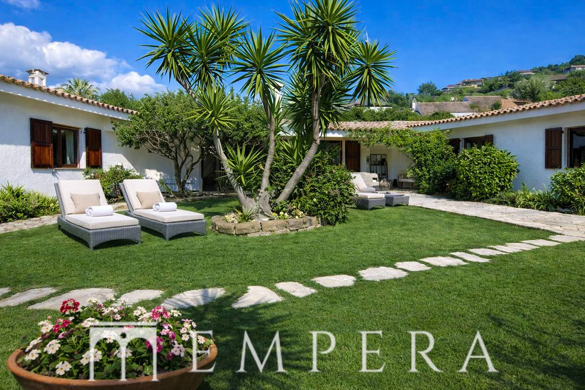 Il tutto circondato da un meraviglioso giardino, raffinato e curato, di circa 2000 mq e completamente attrezzato con zona barbecue/forno esterno e da due docce esterne funzionanti.