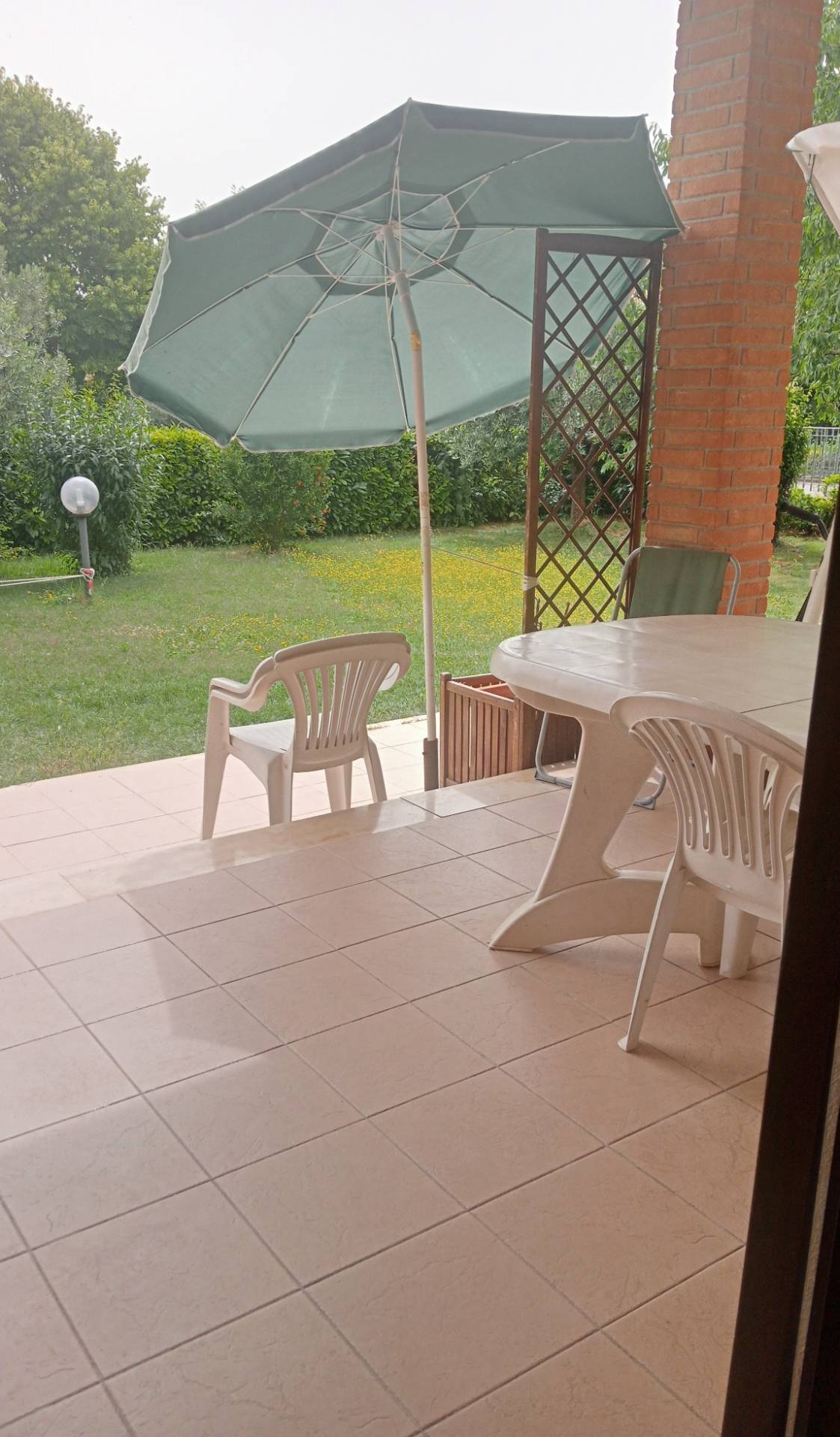 La villetta, completamente recintata, ha un giardino, ben piantumato e completo di pozzo ed impianto d'irrigazione, di circa mq. 600. Molto carino il loggiato d'ingresso ed il porticato dal quale si accede in giardino uscendo dalla cucina.