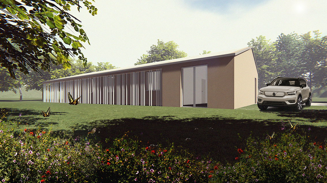 Caratteristiche La progettazione architettonica si sviluppa su determinati concetti base: - grandi spazi verdi -nuova lettura del casolare della campagna marchigiana -attenzione ai dettagli e ai materiali in rispetto con l'ambiente - risparmio energetico La struttura principale dell'immobile (pilastri e travi) in acciaio mentre la struttura secondaria in legno lamellare.