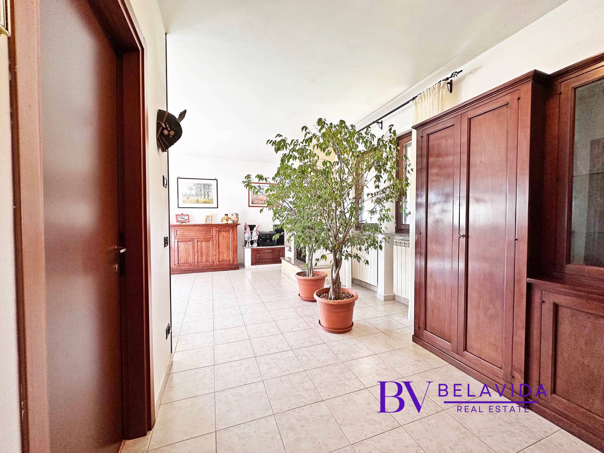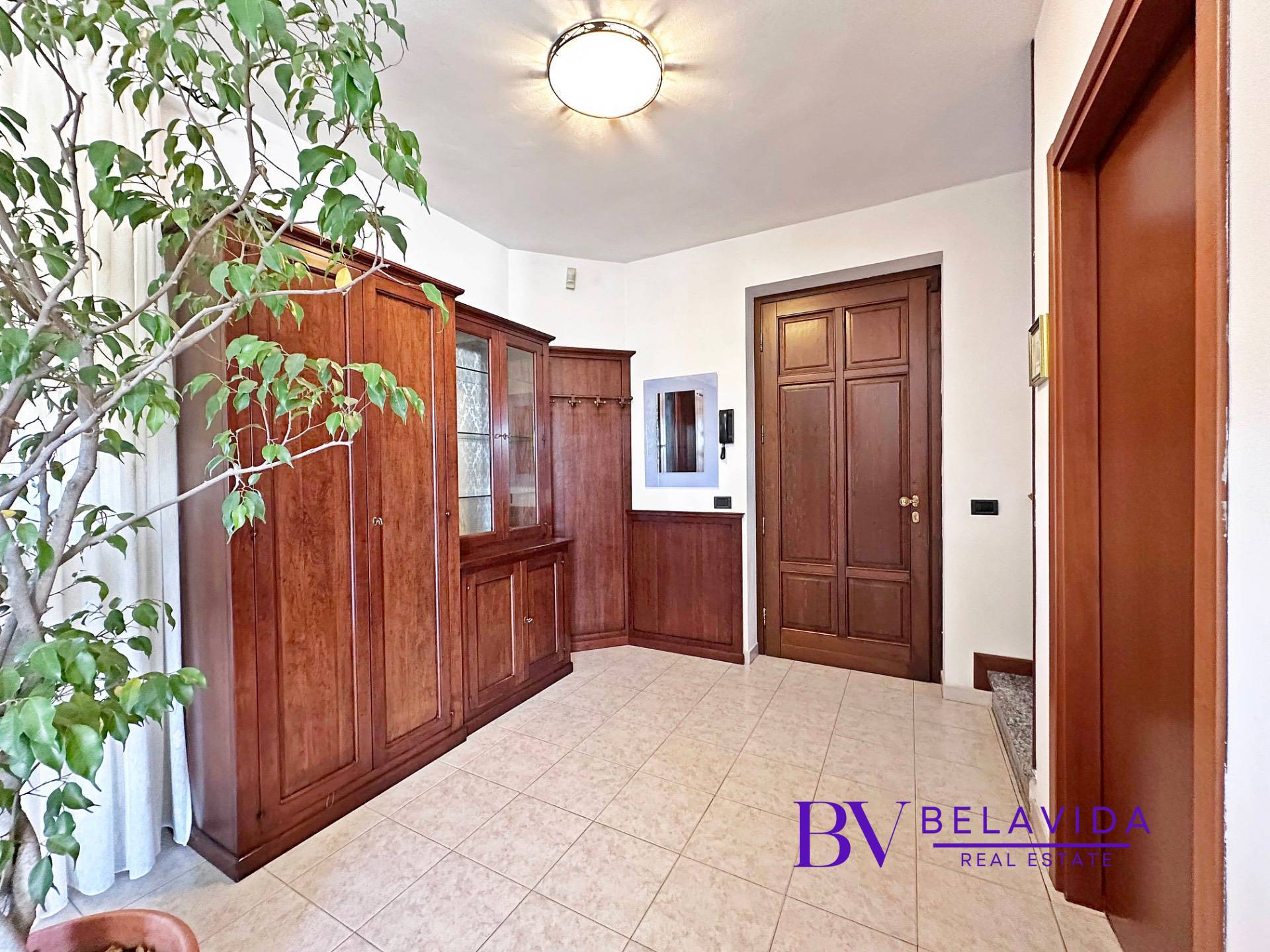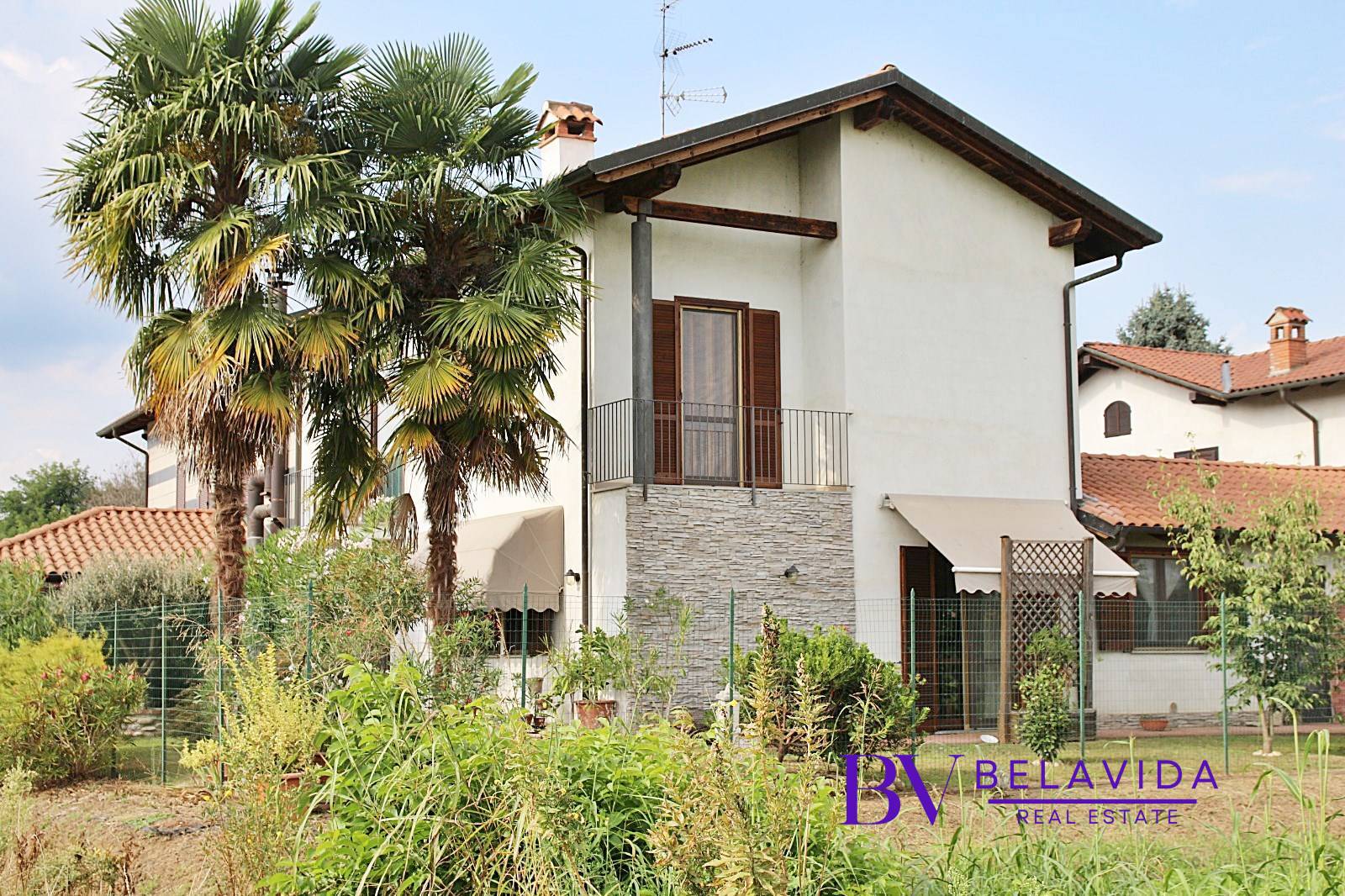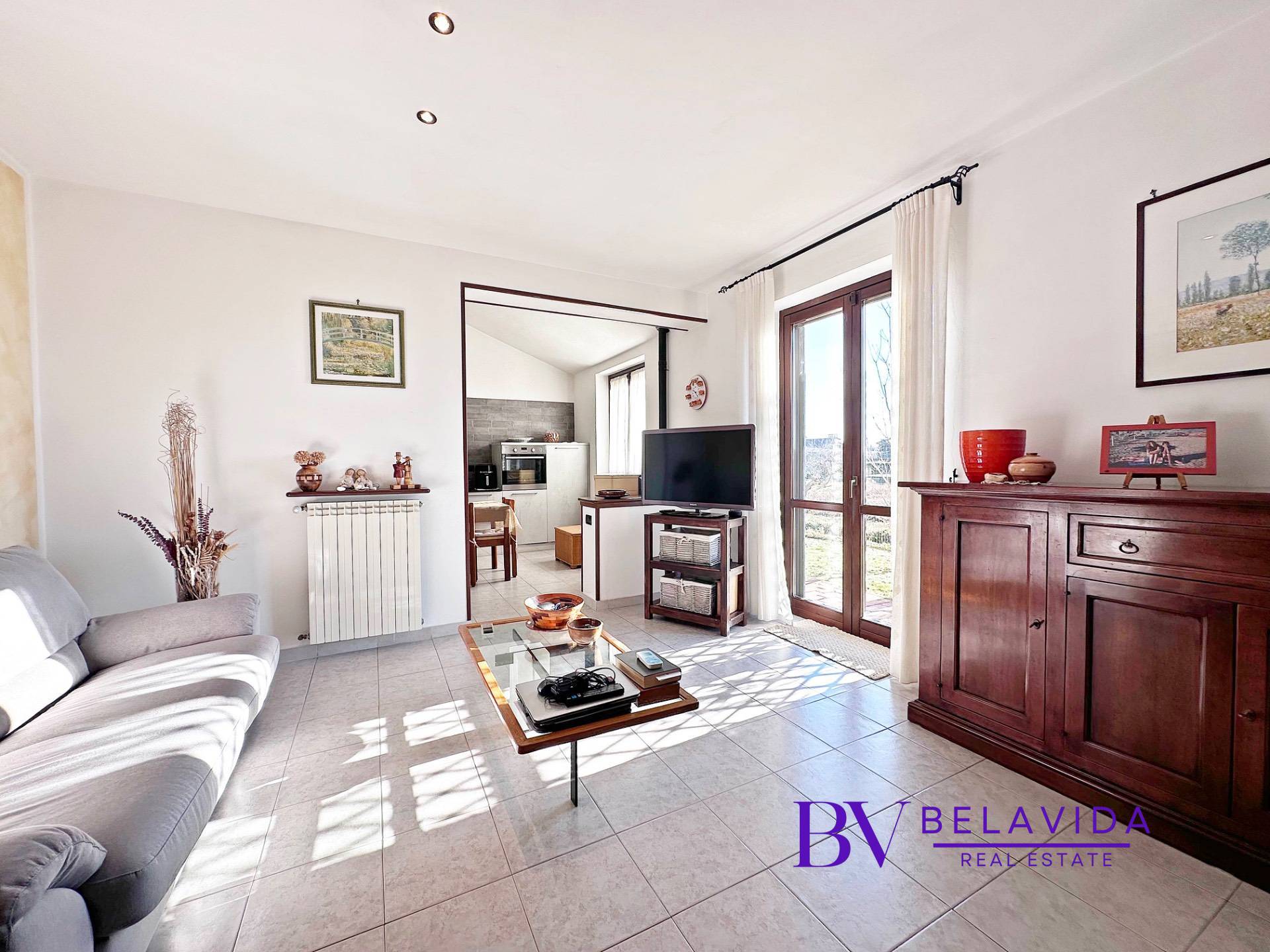 In contesto residenziale di sole villette, immersa nella tranquillit, con vista sulla campagne e sull'arco alpino, a soli 1 km dal centro, proponiamo in vendita questa splendida villetta indipendente, perfetta per chi cerca un'oasi di pace senza rinunciare alla comodit dei servizi a portata di mano. La propriet si sviluppa su due piani ed cos composta: Piano Terra: Ingresso indipendente con ampia vetrata sul giardino Soggiorno doppio con camino, ideale per momenti di relax Bagno di servizio Cucina abitabile semi aperta sul soggiorno Piano primo: Camera matrimoniale con cabina armadio e accesso sul terrazzo Due ampie camere da letto di cui una con balcone Bagno principale Ulteriore locale predisposto per la realizzazione di un terzo bagno Esterno: Giardino privato, perfetto per godere di momenti all'aperto Autorimessa doppia Locale caldaia Dotazioni: Pavimenti in ceramica Serramenti in legno doppio vetro con persiane, mentre sul terrazzo e all'ingresso troviamo serramenti in pvc, portoncini blindati, zanzariere, impianto d'allarme, impianto fotovoltaico.