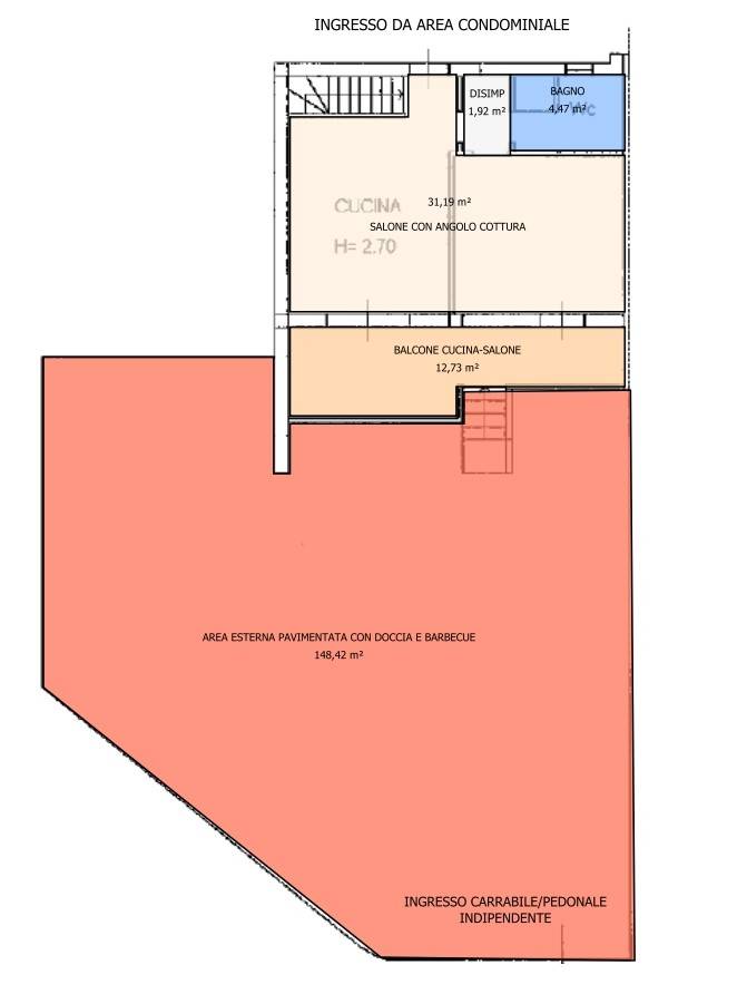 All'ingresso si trova un luminoso salone a vista con angolo cottura, disimpegno e bagno che completa una zona giorno ampia e perfetta per preparare deliziosi pasti da gustare in famiglia o con gli amici.