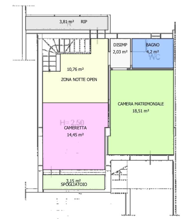Dalla zona open si accede alle due spaziose camere da letto, disimpegno, bagno e ripostiglio.
