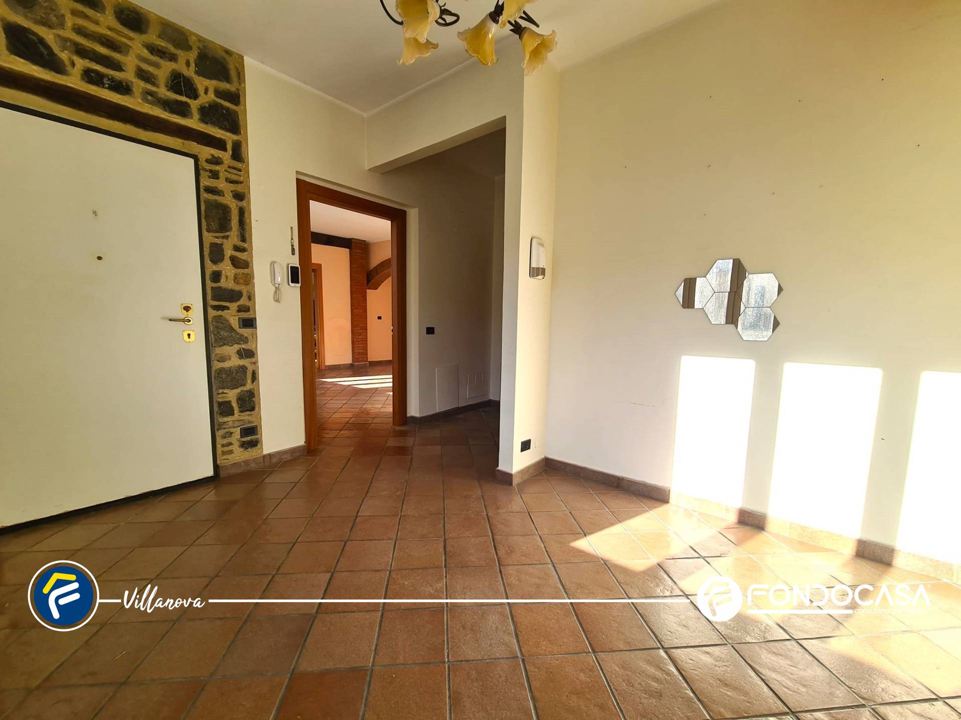 Lingresso si apre su un accogliente disimpegno che conduce a un ampio e luminoso salone, ideale per momenti di convivialit e relax.