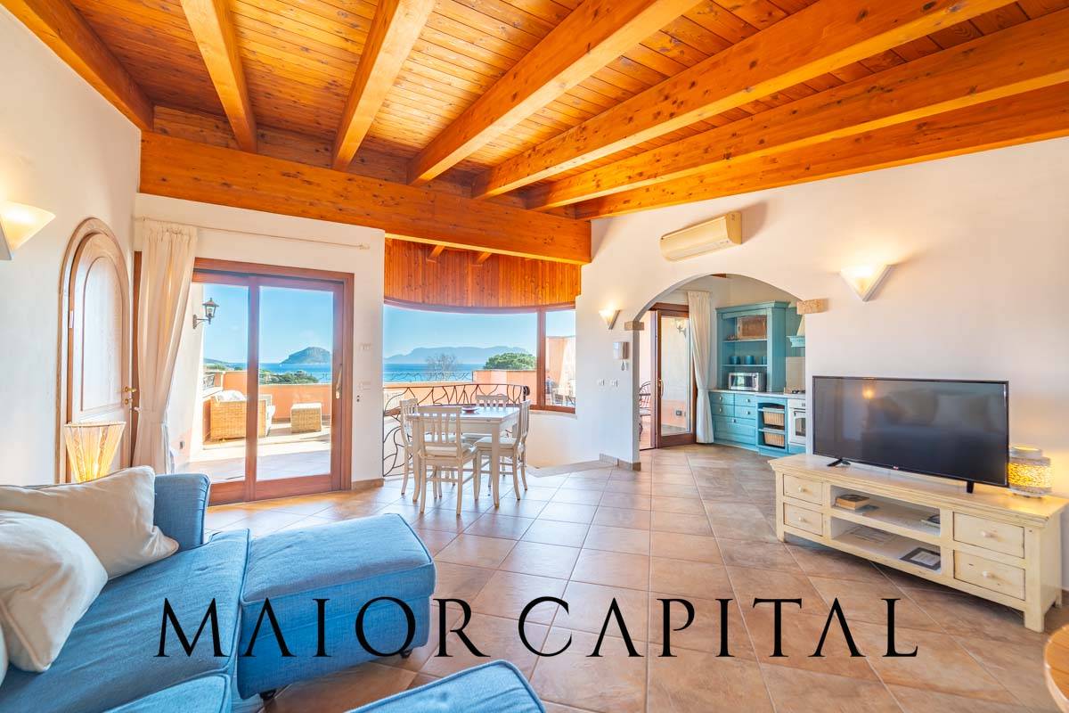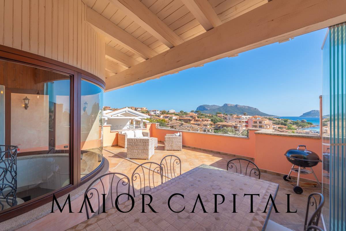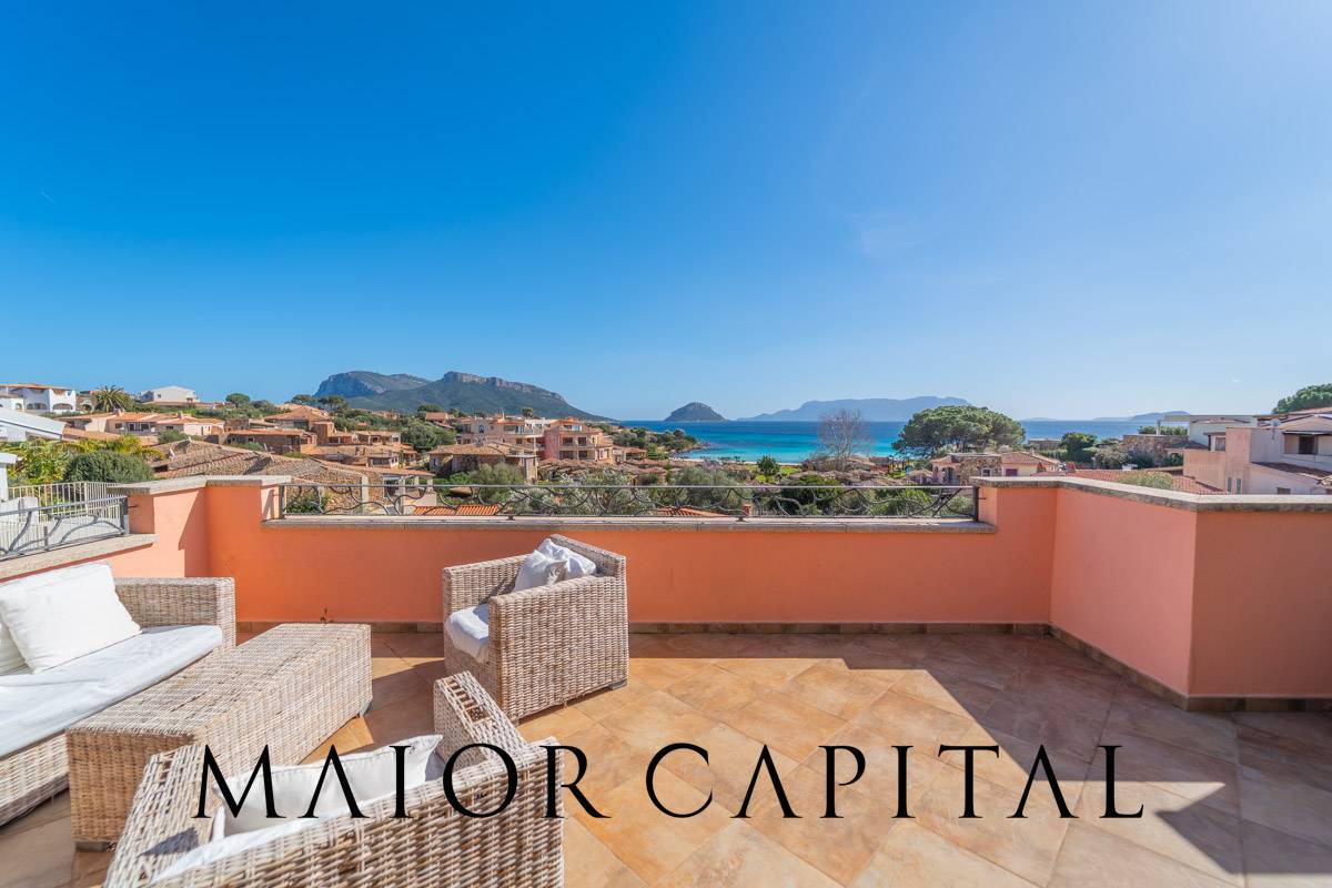 Golfo Aranci | Baia Caddinas | Porzione di villa vista mare su due piani In vendita, questa splendida porzione di villa bifamiliare vanta unincredibile vista sul mare, con un panorama a 180° che spazia dalla suggestiva Cala Moresca fino al promontorio di Capo Ceraso.