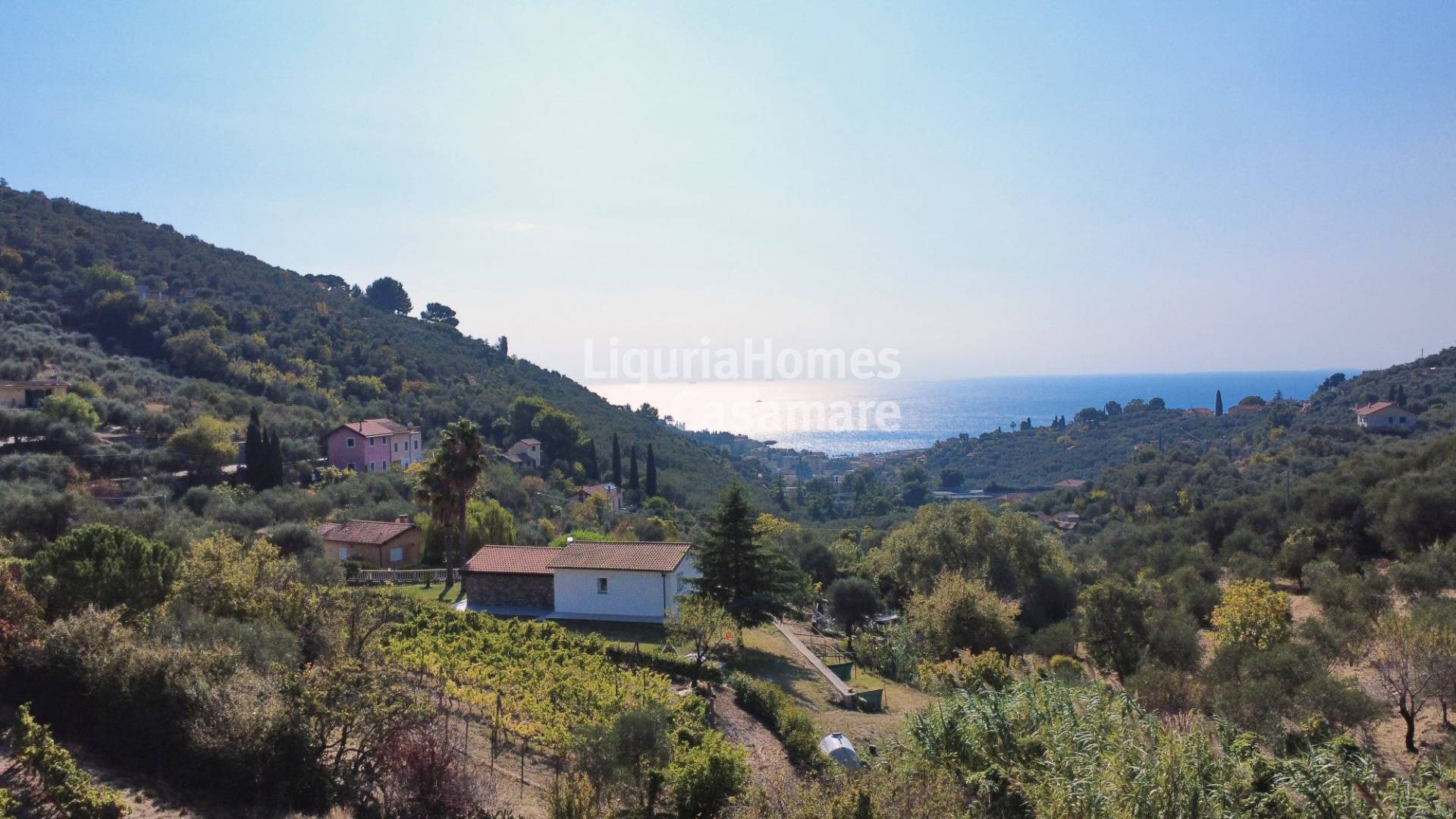 A circa 3,5 km dalle spiagge di Imperia, in una delle zone pi tranquille e soleggiate della collina, bellissima villetta indipendente in vendita con splendida vista mare, completamente ristrutturata e pronta da vivere.
