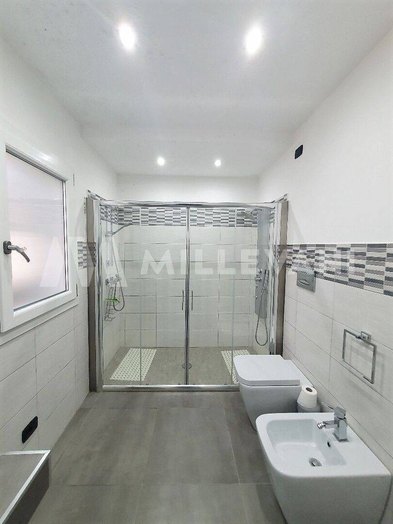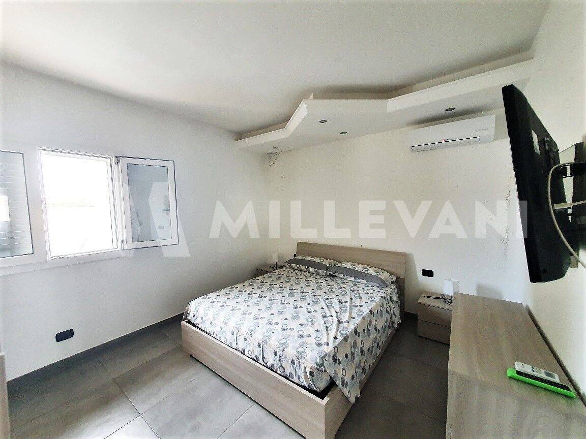 L'abitazione principale, ottimamente rifinita, si compone nella parte antistante di una graziosa veranda di circa 20 mq, ingresso con spaziosa zona living e cucina abitabile, tre ampie camere da letto matrimoniali e due bagni per un totale di circa 100 mq; Tramite scala esterna si raggiunge il grande terrazzo panoramico di circa 100 mq. Nella parte esterna troviamo una zona barbecue, un solarium e una piscina rialzata.