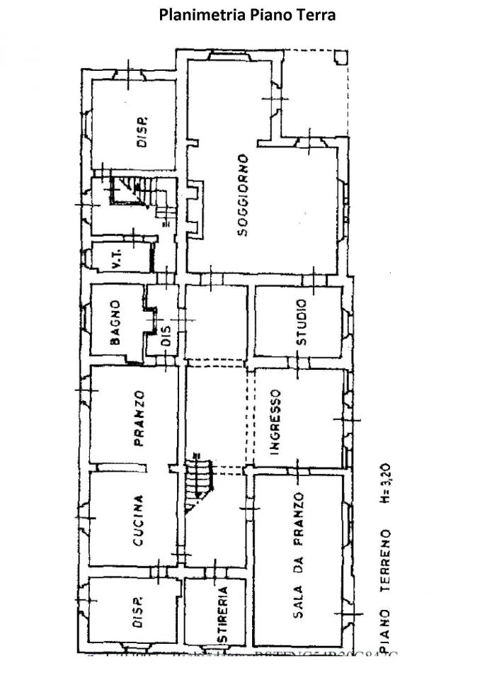I pavimenti delle zone giorno mantengono le piastrelle a graniglia ed a cemento colorato dei primi anni del 900. Piano primo: si accede al primo piano attraverso la scala principale oltre alla scala secondaria che porta anche ai locali sottotetto.