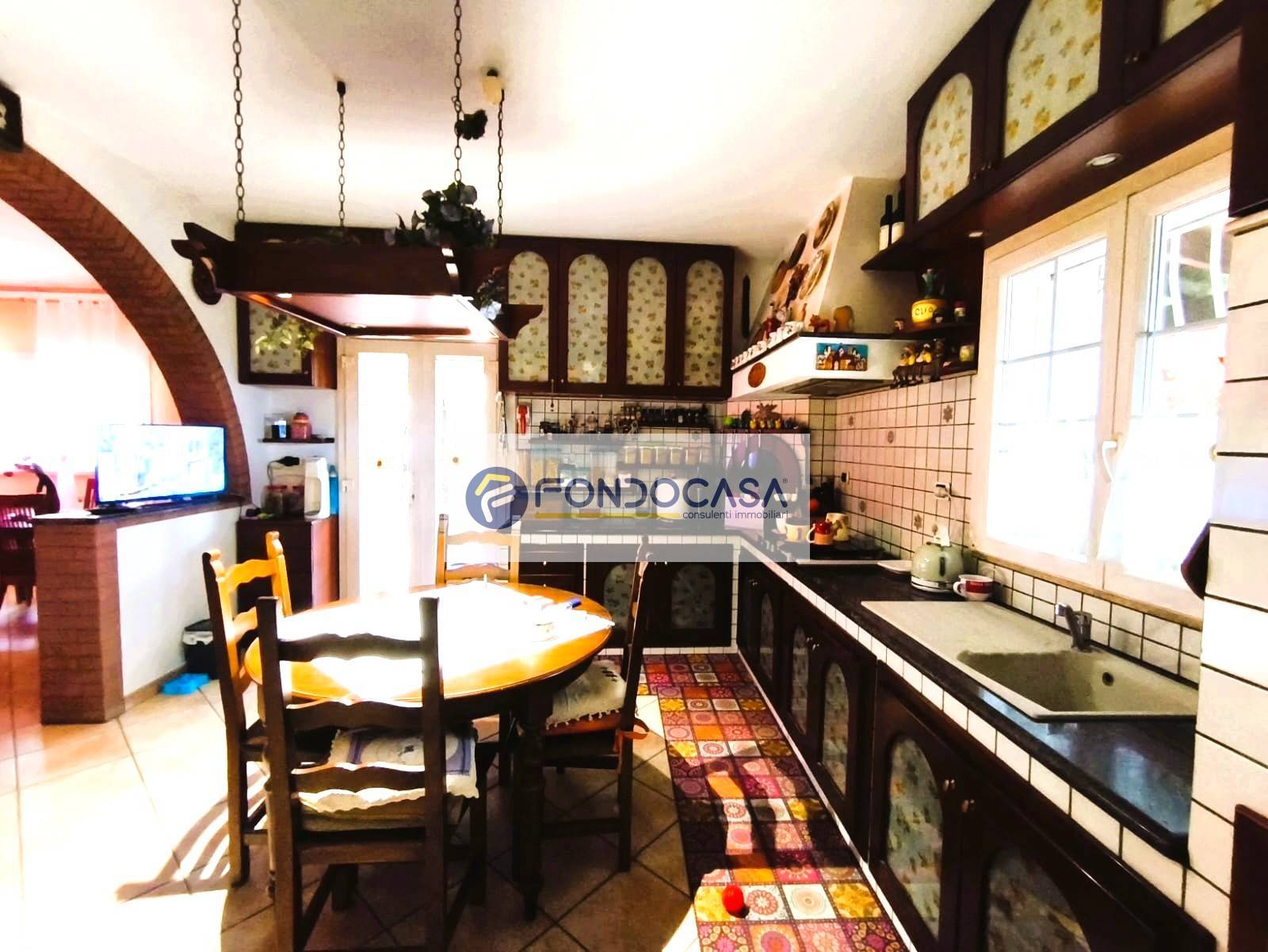 La cucina, abitabile e completamente arredata, ideale per chi ama cucinare e vuole godere di uno spazio ampio e funzionale.