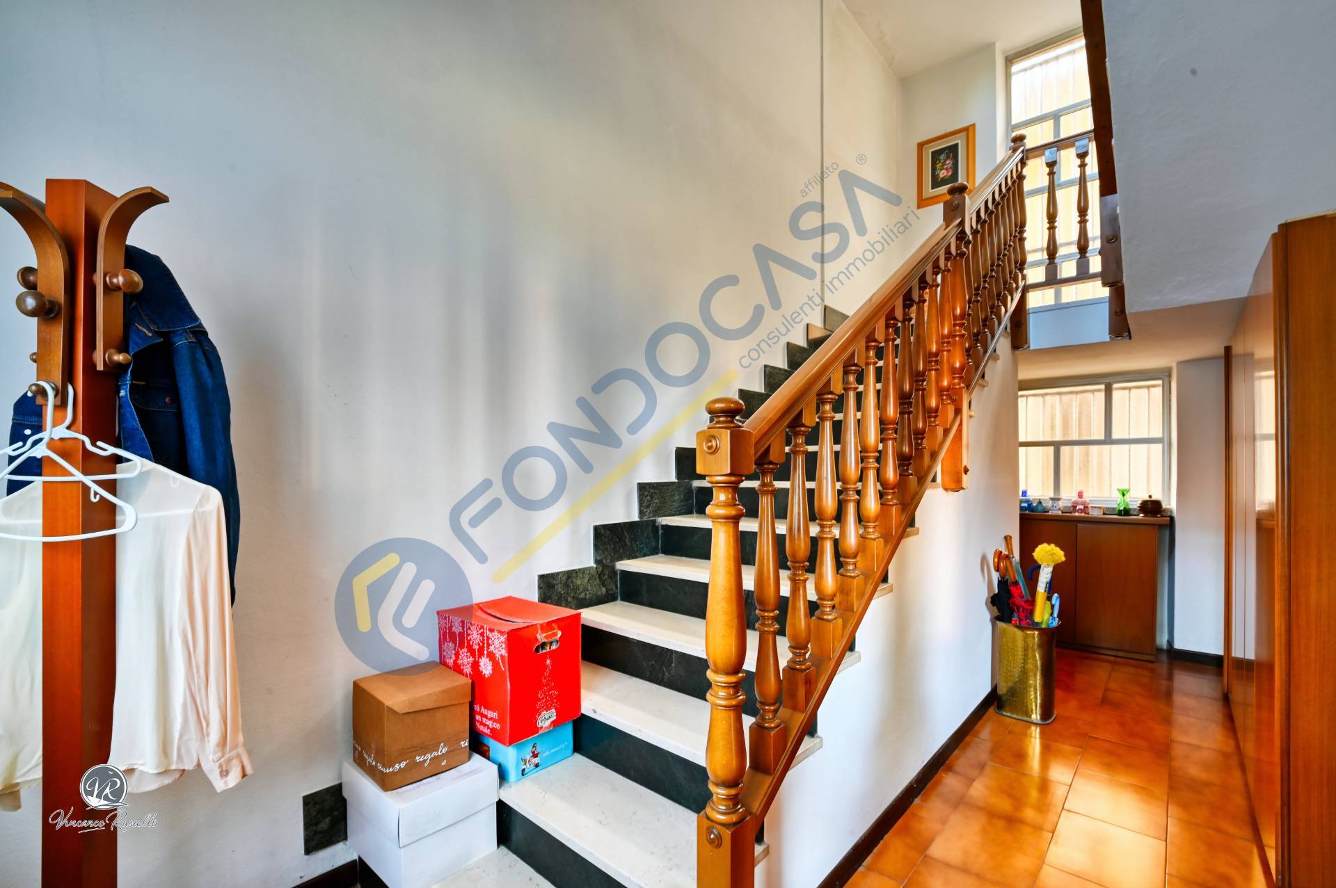 Dopodich dalle scale possibile accedere al primo piano e alla cantina/taverna.