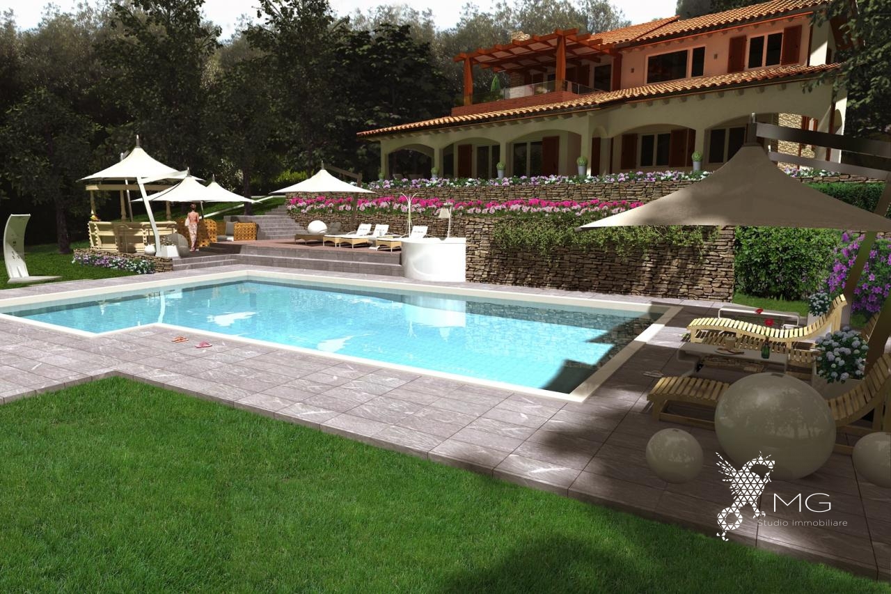 Toscana - Quercianella - Villa indipendente con piscina e vista mare "Villa Marlies" sorge in un esclusivo contesto residenziale, in posizione aperta e soleggiata dominante il sottostante Porticciolo del Chioma con una vista mare mozzafiato.