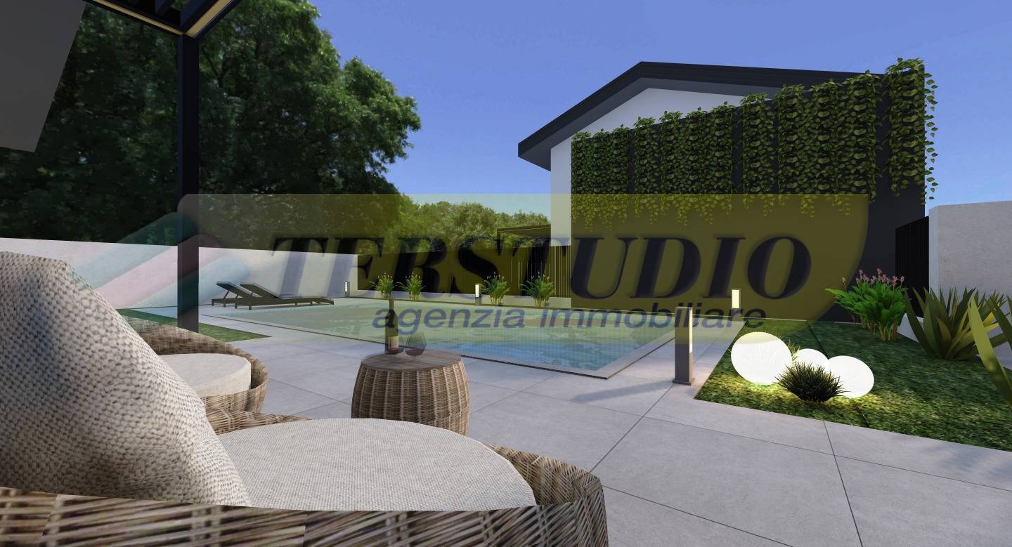 TERSTUDIO VENDE NUOVISSIMA VILLA AD ELEVATO RISPARMIO ENERGETICO, nel comune di Martinengo L'immobile cos composto: ingresso INDIPENDENTE da un grazioso vialetto privato, GIARDINO, ampia VERANDA, PISCINA e autorimessa DOPPIA.
