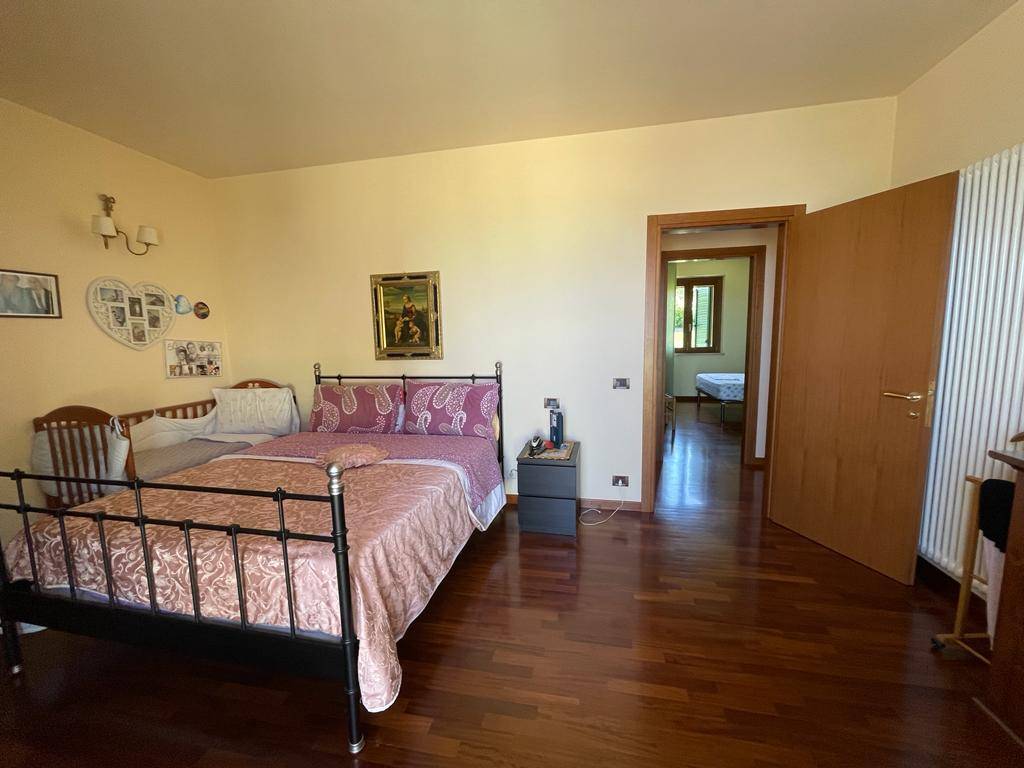 Ampia scala interna in legno che conduce al piano superiore di mq 140 circa, composto da 4 camere da letto di cui 3 matrimoniali, 2 bagni e 2 terrazze panoramiche di complessivi mq 60. La residenza dispone al piano sottotetto di un ampio monolocale raggiungibile esternamente da scala a chiocciola, composto da camera, bagno con doccia e ripostigli vari. La villa contornata da un giardino di mq 2.800 completamente recintato e piantumato, dotato di impianto di irrigazione interrato.