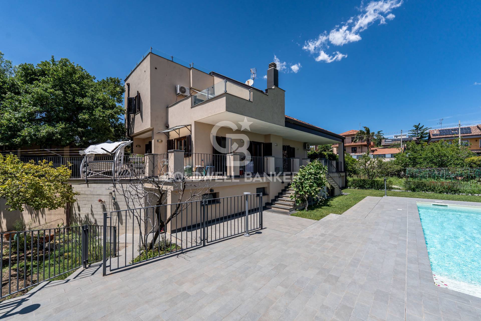 La villa vanta anche di due terrazzi, di una piscina perfetti per godere del sole e del panorama circostante, e di un ampio giardino privato dove poter trascorrere piacevoli momenti all'aria aperta e organizzare barbecue estivi.