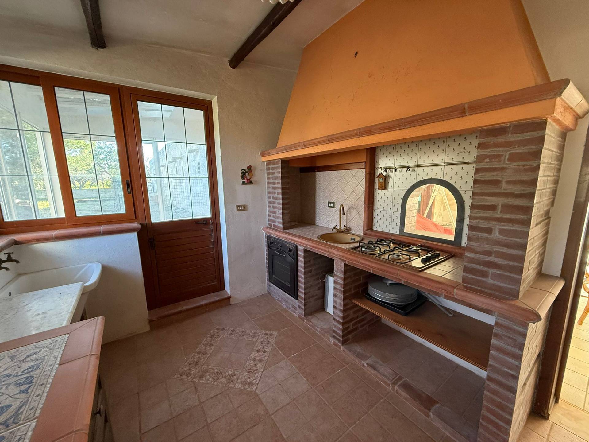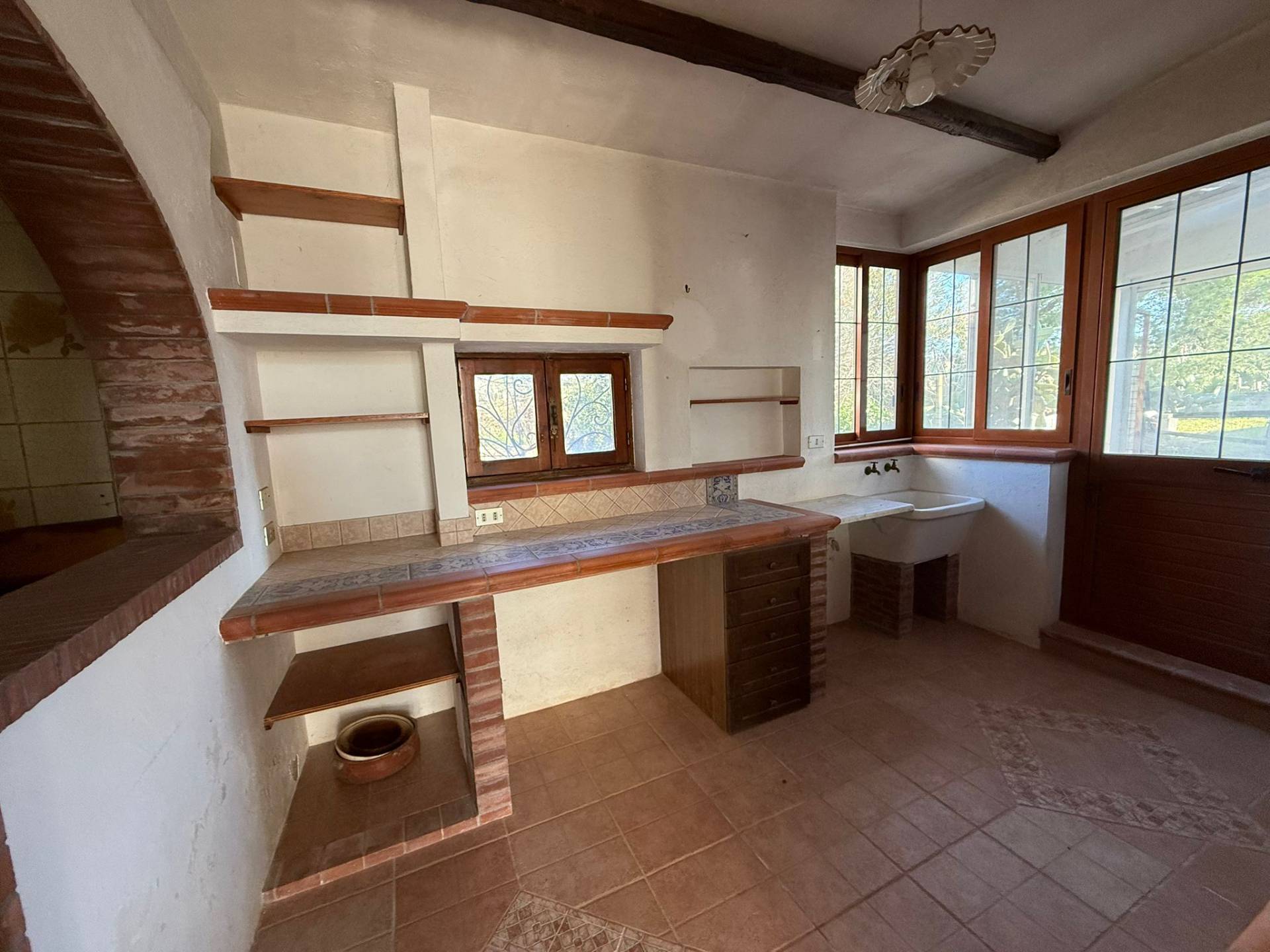 Il piano terra caratterizzato da un ampio soggiorno con due meravigliose vetrate vista giardino, una cucina in muratura e una sala da pranzo con camino, due vani matrimoniali e bagno; al primo piano si accede da scala interna con accesso a un ulteriore zona giorno con camino, dotato di ampie finestre che offrono una vista mozzafiato sul paesaggio circostante, angolo cottura, bagno e due ampie vani matrimoniali con pavimenti d'epoca originali.