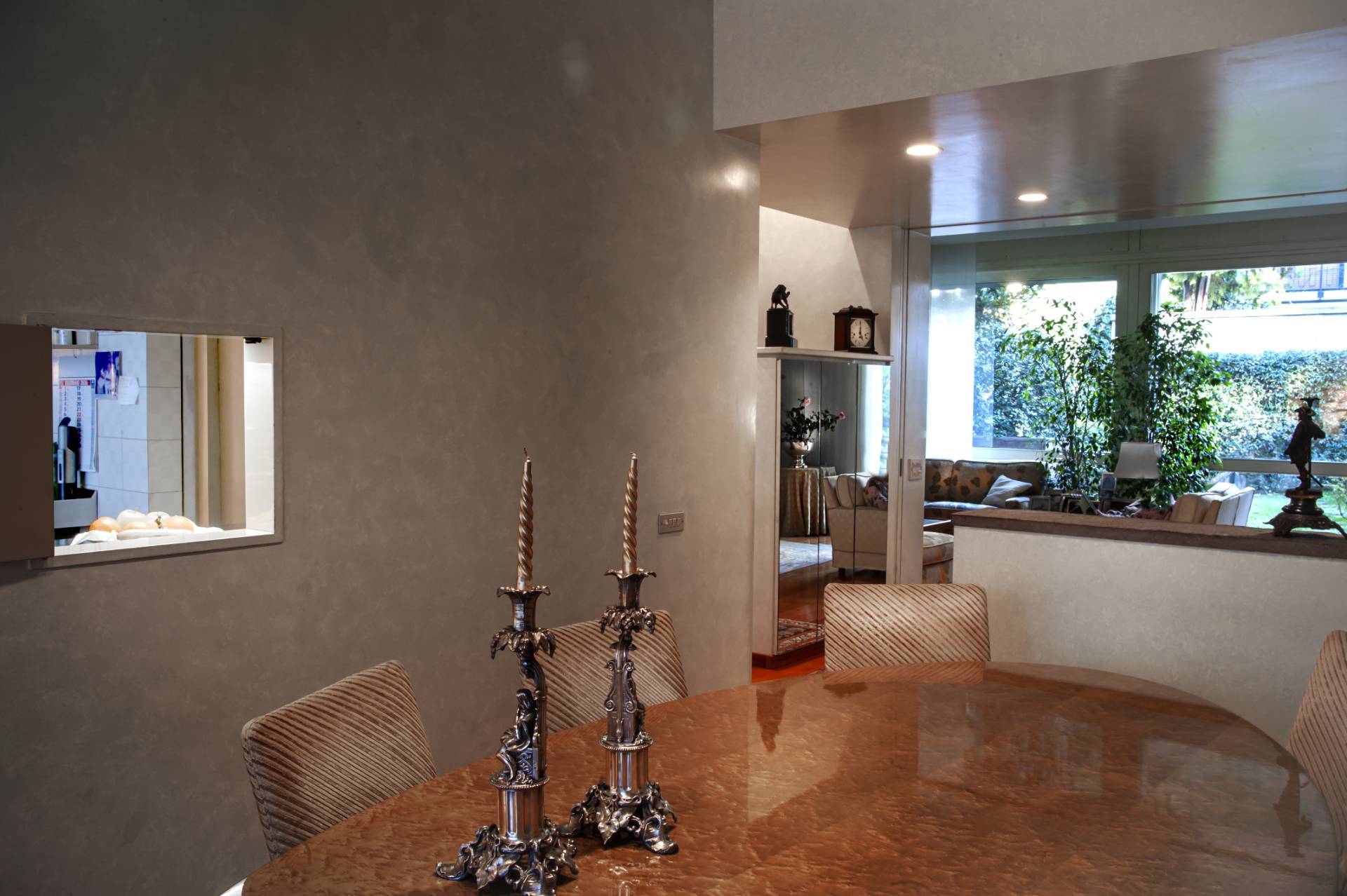 Il piano rialzato composto da ingresso, cucina abitabile con adiacente sala da pranzo, doppio salone con vetrate in affaccio sul giardino interno, bagno ospiti.