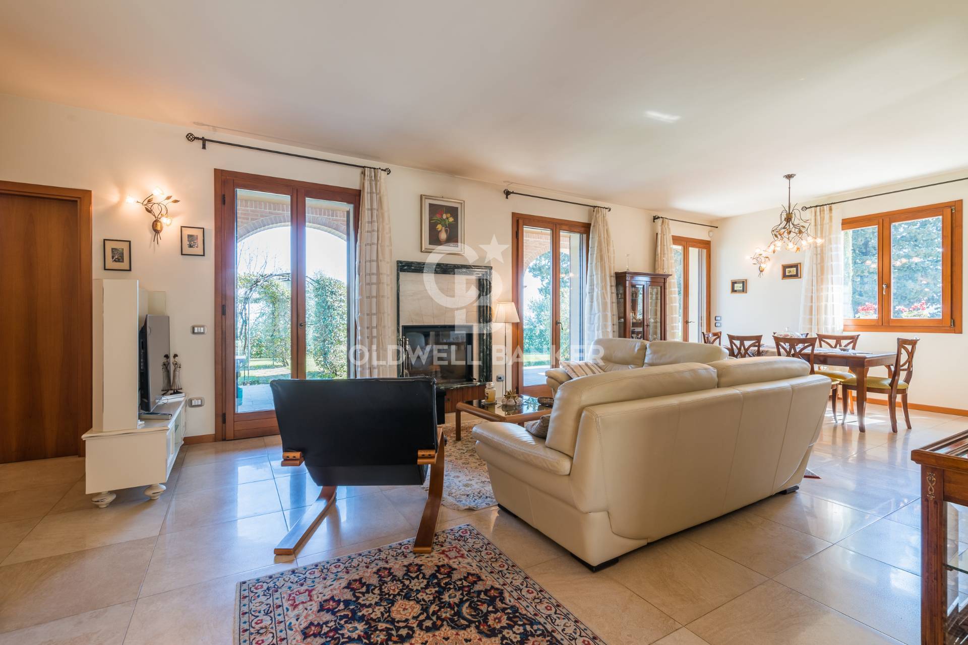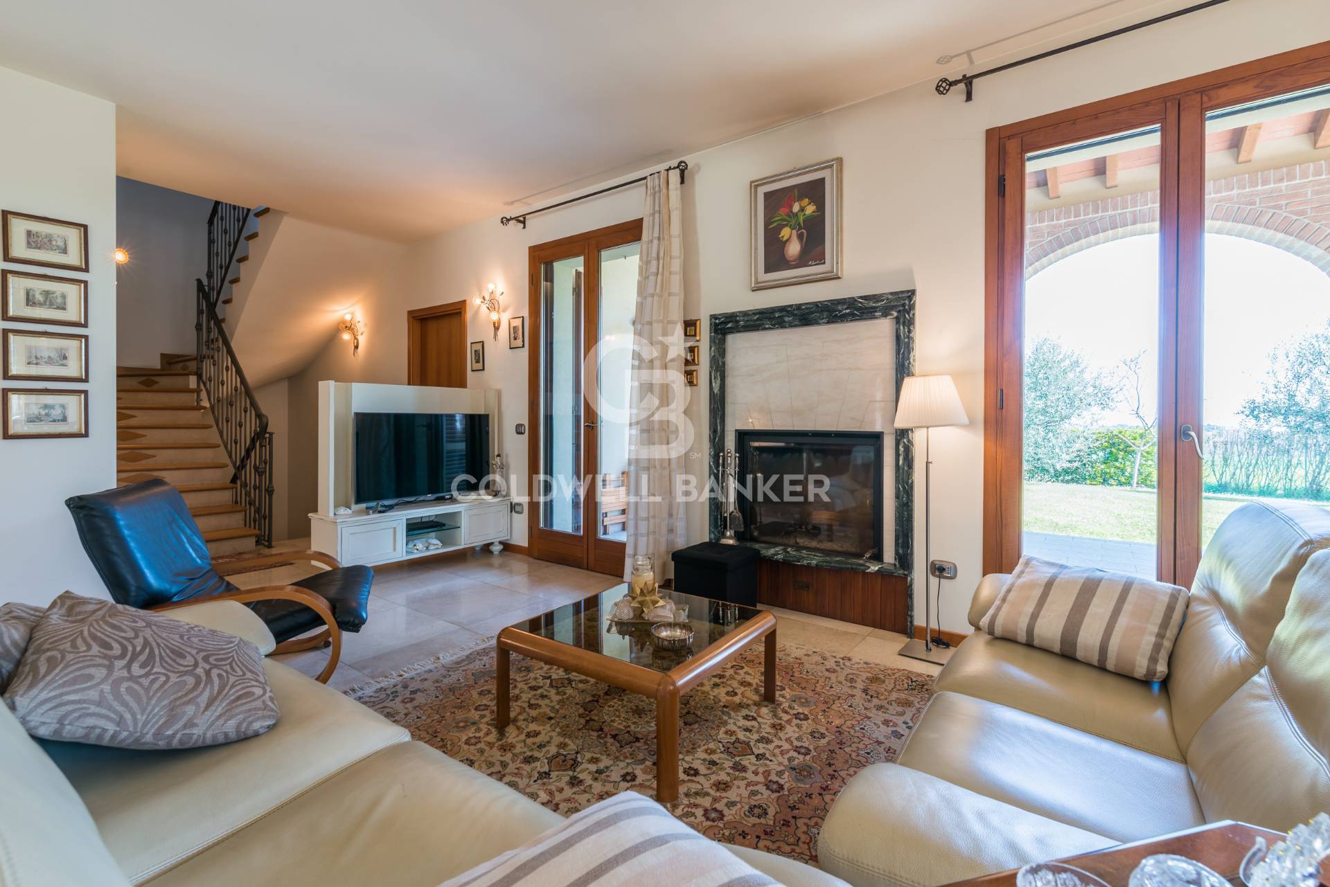 La propriet si distingue per larchitettura raffinata, con loggiati ad arco, mattoni faccia a vista e ampie vetrate che creano una piacevole continuit tra interno ed esterno.