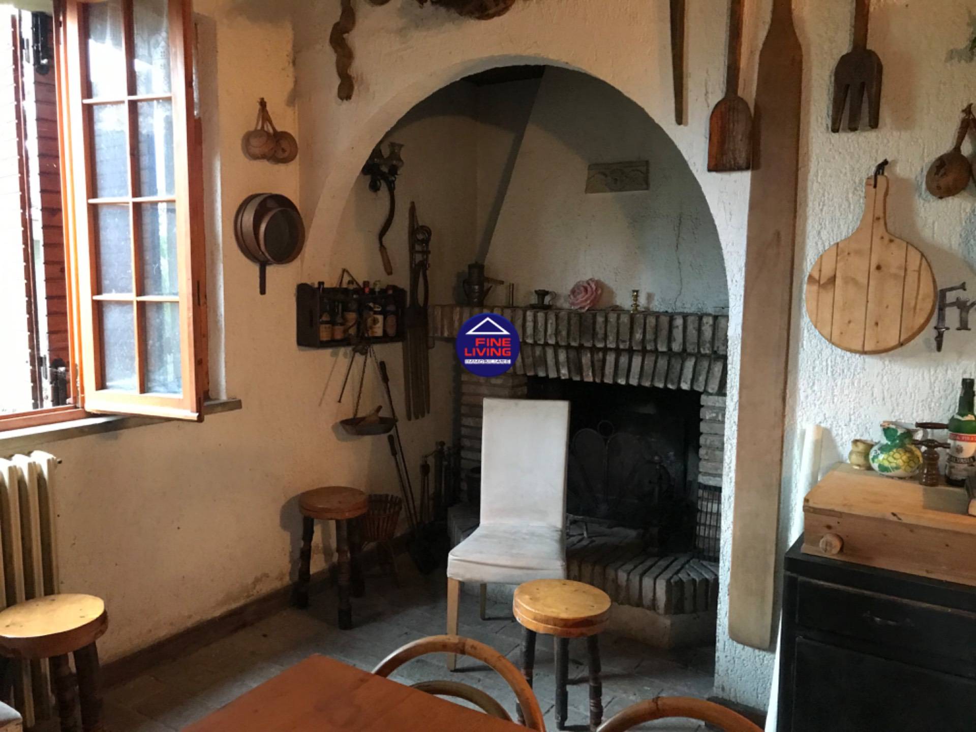 Al piano terra, un grande salone con camino offre la possibilit di creare un'ulteriore ambiente per realizzare unampia cucina, mentre il vasto giardino che circonda la villa su quattro lati liberi perfetto per momenti di relax all'aperto.