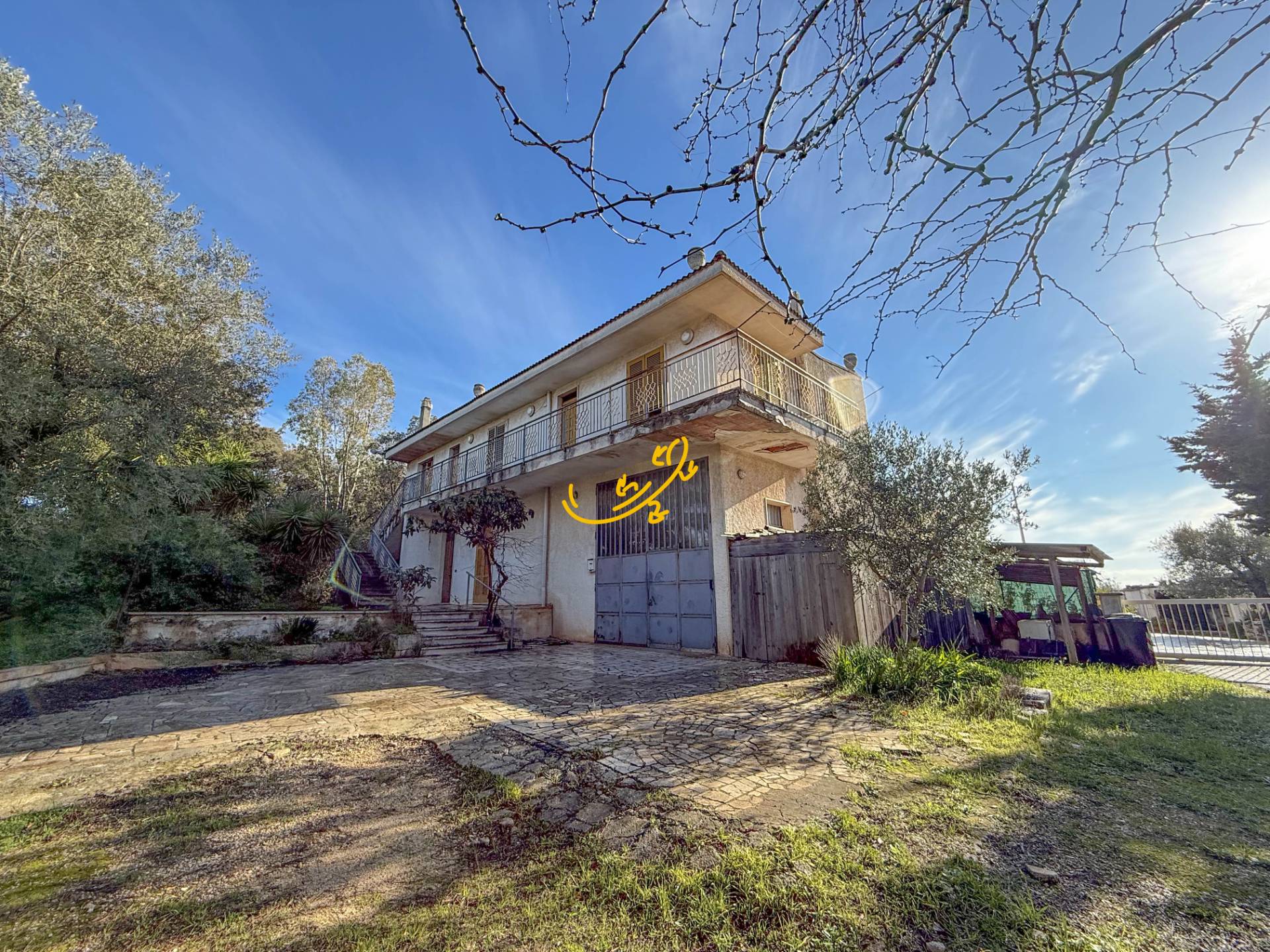 Allesterno, un lato della villa circondato da un rigoglioso giardino circa un ettaro arricchito da alberi tipici della macchia mediterranea, che dona privacy e una piacevole atmosfera naturale.