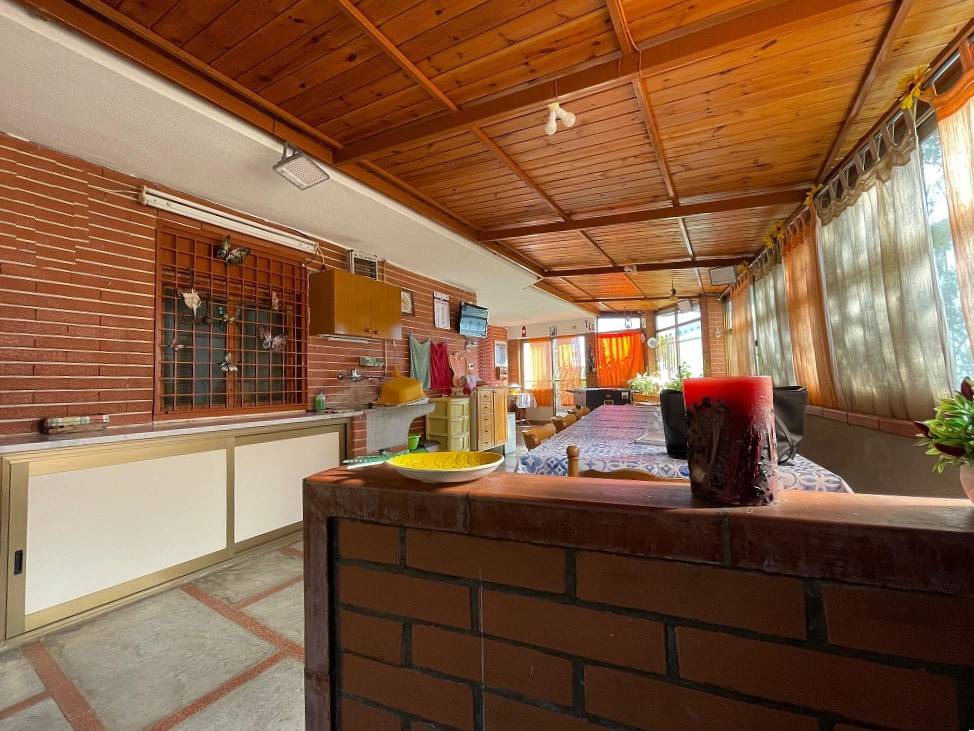 Si sviluppa su una superficie di mq 160 cos suddivisa: ingresso al piano terra su ampia veranda caratterizzata dalla presenza di vetrate panoramiche che consentono alla luce naturale di inondare gli interni della propriet, creando un'atmosfera luminosa e accogliente, e di godere della vista del giardino; accogliente cucina soggiorno e wc. Una comoda scala interna conduce al piano primo, caratterizzato dalla presenza di tre camere da letto con esposizione su balcone panoramico e un wc. Completa la propriet un magazzino di mq 15. incluso nella vendita un terreno agricolo di esclusiva propriet raggiungibile comodamente a piedi.