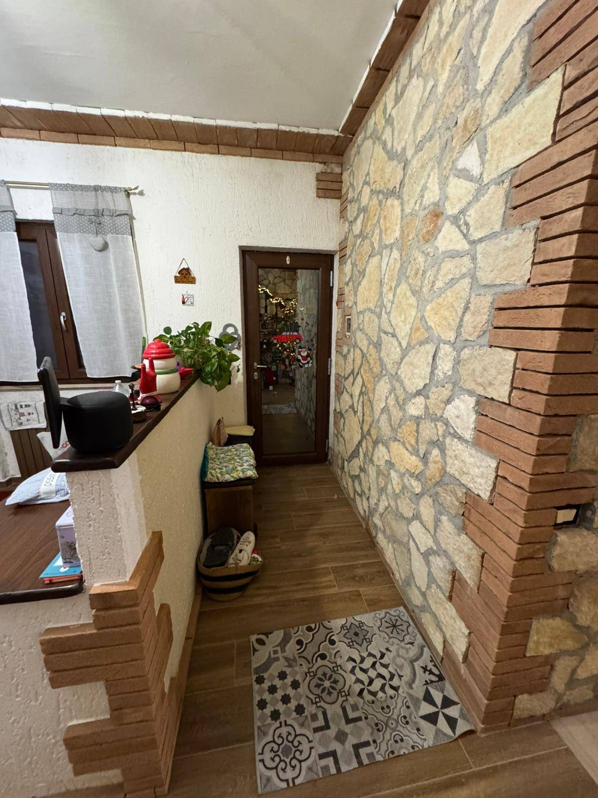 La casa si sviluppa su due livelli, accogliendo con unampia e luminosa zona giorno al piano terra: una grande sala con camino, cuore caldo dellabitazione, una cucina abitabile, un bagno con doccia e un comodo ripostiglio.